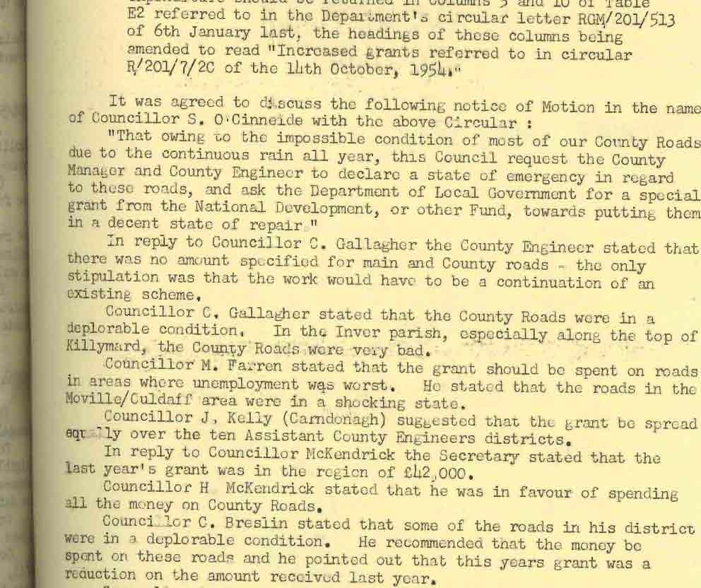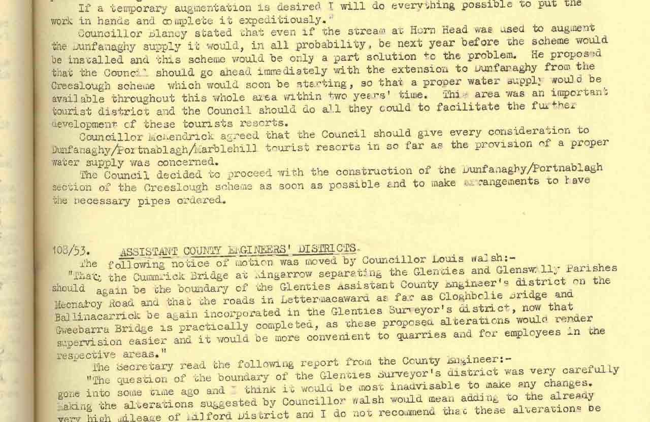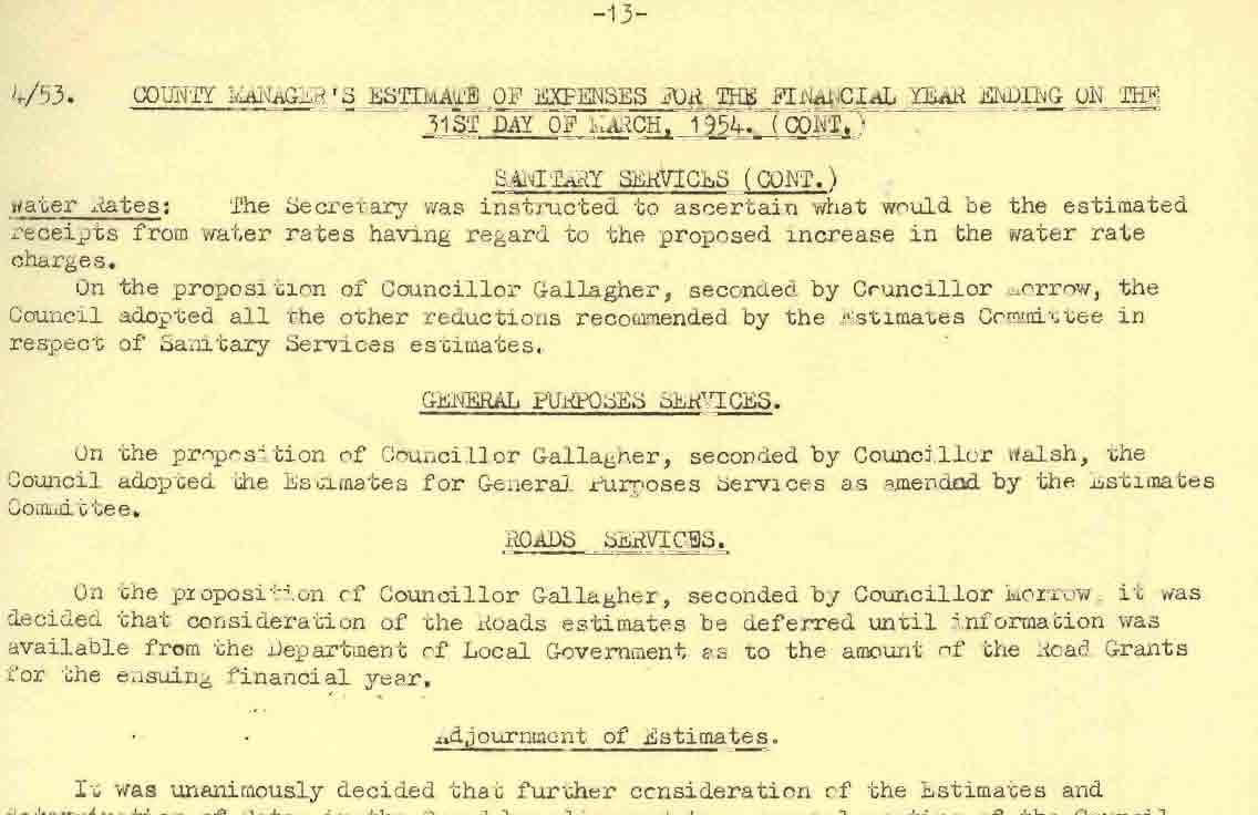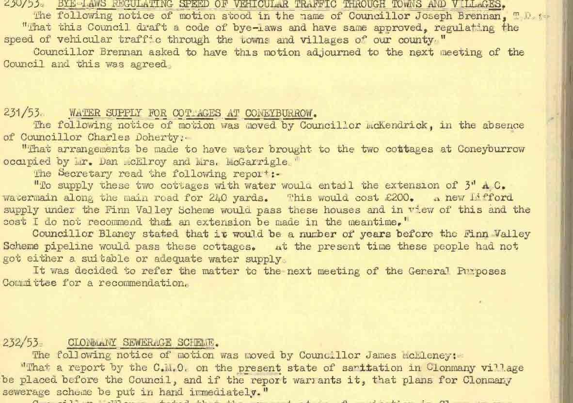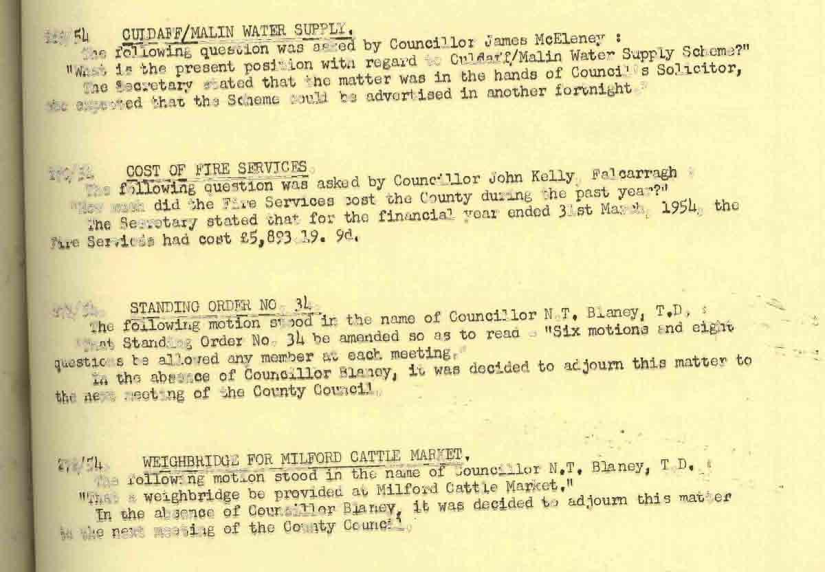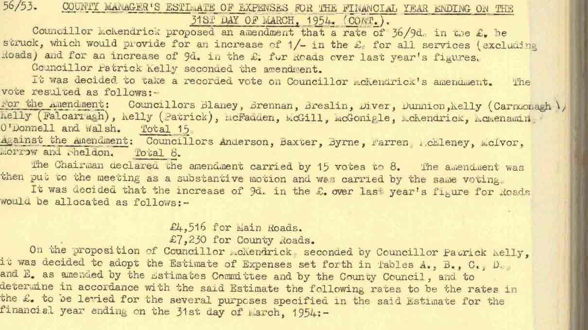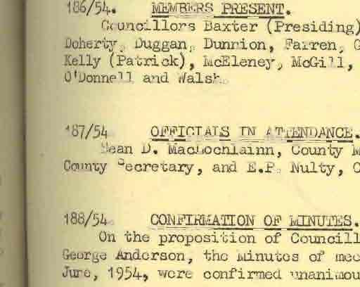 Donegal County Council Minutes, 1953 - 1954