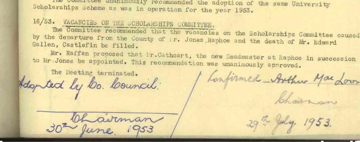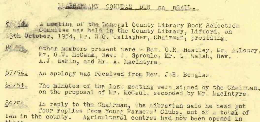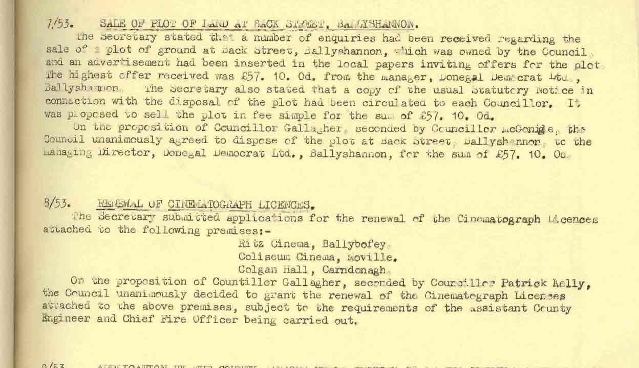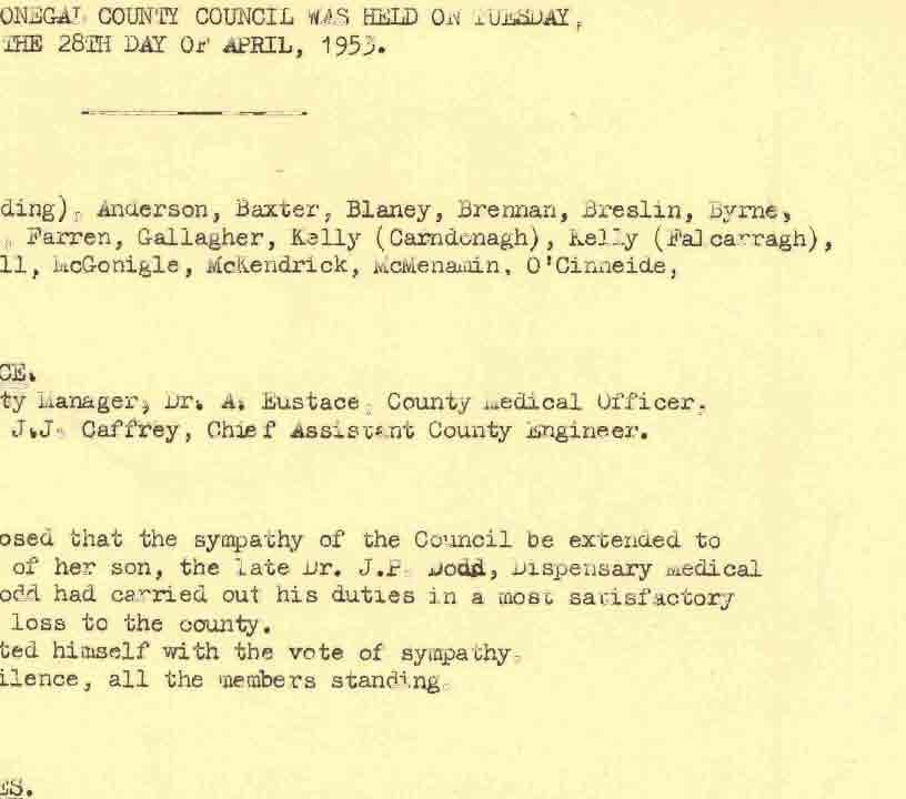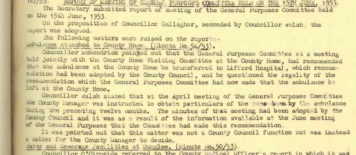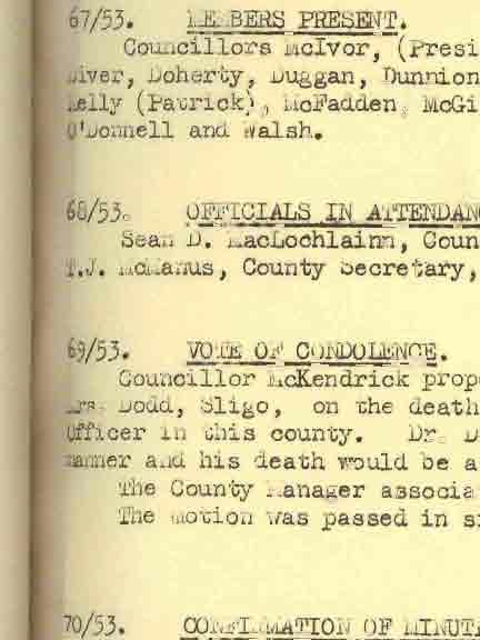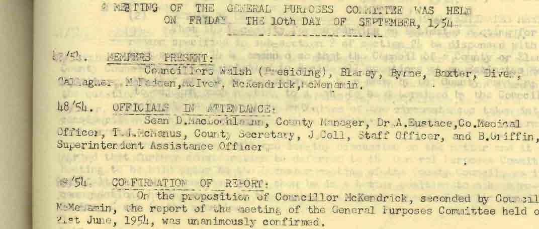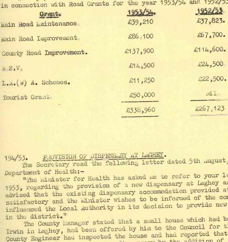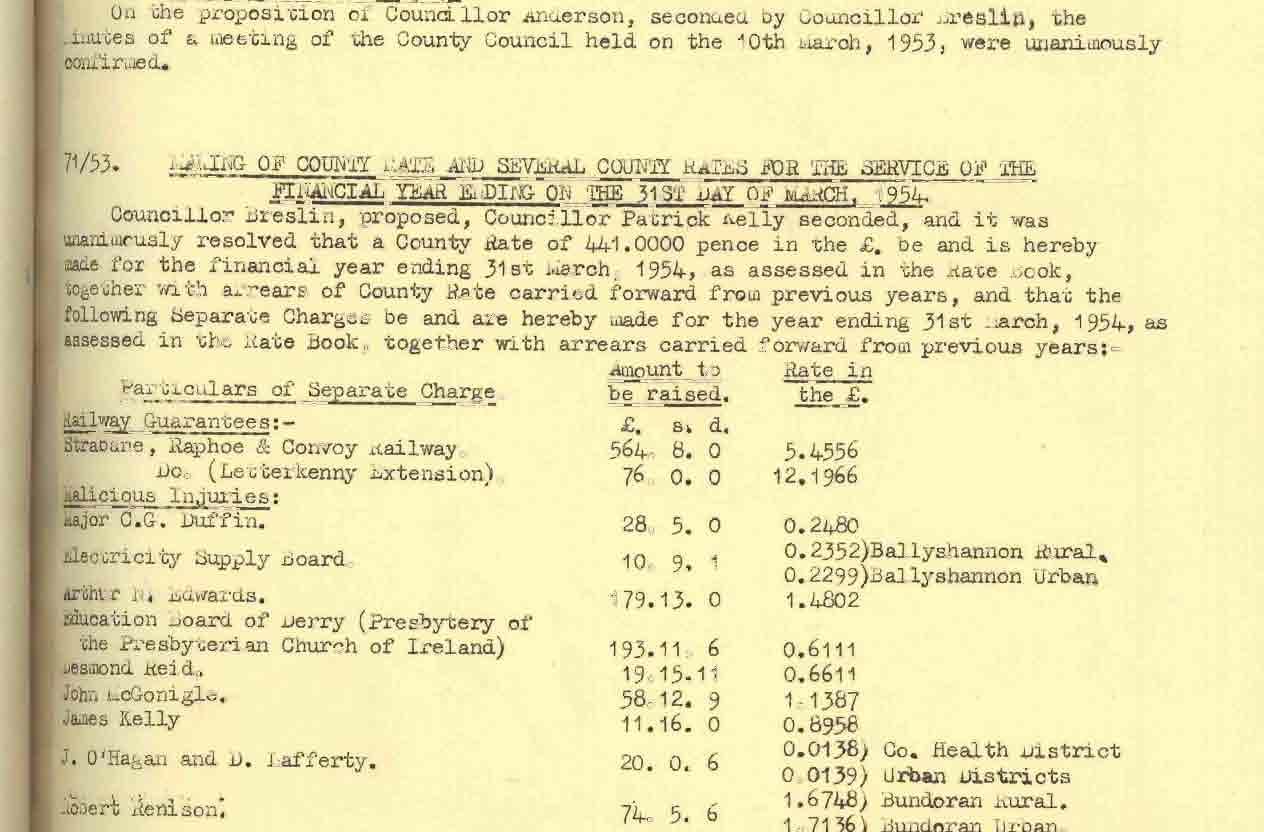 Donegal County Council Minutes, 1953 - 1954