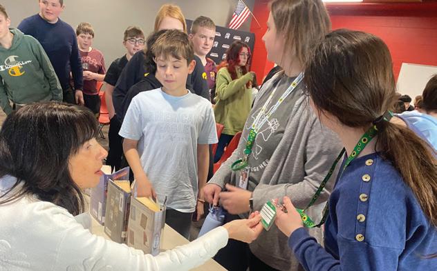 writing process, even when they get frustrated or overwhelmed, because it’s worth it to see where their imaginations can lead. She ended her talk with a Q&A session, where students posed several enthusiastic and thoughtful questions about her books and what the life of a professional writer is really like.