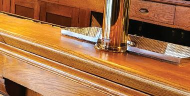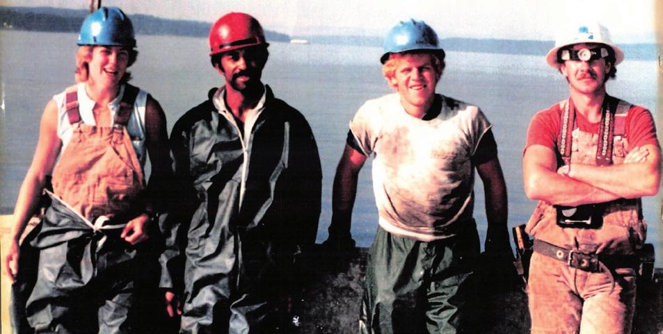 in Erie, Pennsylvania for the Bethlehem Steel Co. Aft er a number of ownership changes, the Stewart J. Cort now operates for the Interlake Steamship Co. Leaving on her maiden voyage on May 1, 1972, she was the first 1,000-footer on the Great Lakes. She’s 105 feet at the beam (width), 49 feet deep, and has a carrying capacity of 58,000 tons, with four, EMD V20 3600 diesel engines turning two propellers and a bow thruster. The ship has a unique self-unloading arrangement. Instead of a typical deckmounted swing boom, it has a short