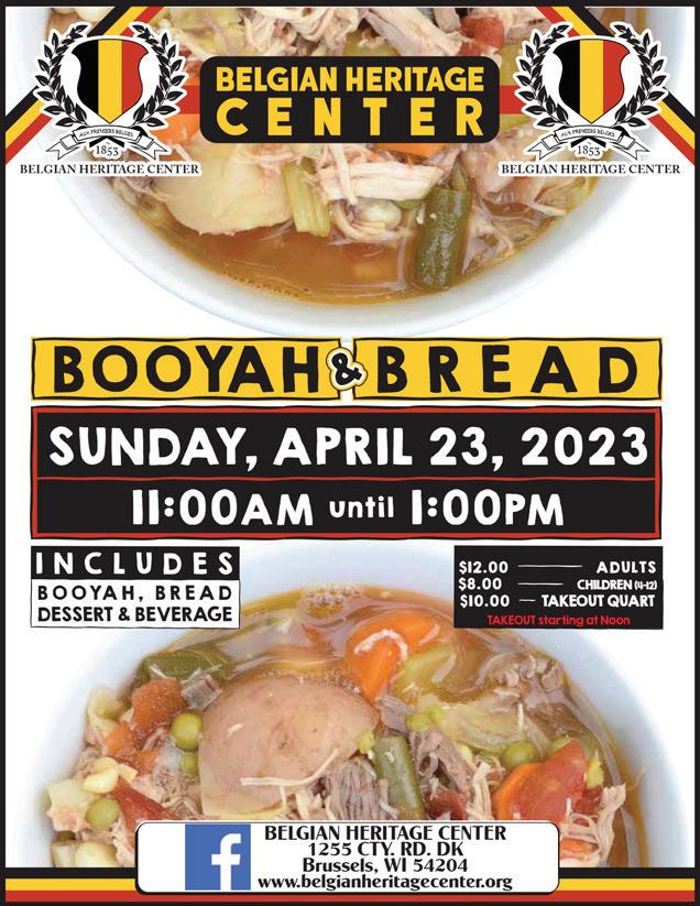 Belgian Heritage Center, 1255 Cty Rd DK, Brussels. 920.825.1328. 11am-1pm. Lunch & homemade desserts. $12/adult. $8/ Children ages 4-12.