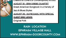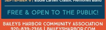 Algoma Concerts in the Park Heritage Park, 512 Lake St. Baileys Harbor Concerts in the Park Kendall Park, 2402 Cty F
