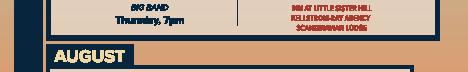 Sister Bay Concerts in the Park, Waterfront Park, 6 pm (through Aug. 14) Sturgeon Bay Harmony by the Bay, Martin Park, 7-9 pm (through Sept. 11) Open Mic, Butch’s Bar, Sturgeon Bay, 8 pm