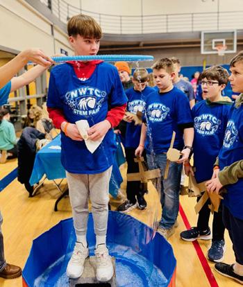 A “choose your own adventure” STEM fair allowed students to explore and choose demonstrations and experiments they think are interesting. 42 students experienced activities like building and launching rockets, making paper, and placing an IV in a “patient”. The event connected hands-on experiments and STEM learning to real-world careers guided by NWTC students, faculty, industry leaders, and