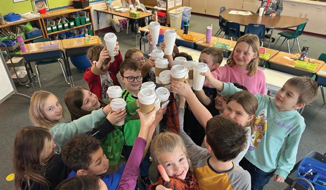 Students at Sawyer School recently had the pleasure of enjoying hot chocolate and animal crackers during the school day. We extend our sincere gratitude to the Friends of Sturgeon Bay Schools for their generous $500 donation to our school. When the school year comes to an end, the committee asks the school’s art teachers to have their students decorate table cloths for the annual “Rock the Dock” fundraising event. On the table cloths, students are instructed to draw or write about something they wish their school had, or had more of. Among the many imaginative suggestions from the 4K-2nd grade students, one was for the provision of Starbucks. Staff collectively decided that instead of offering Starbucks, students would be treated to hot chocolate. This proved to be an excellent way to stay warm during the coldest weeks and provided a pleasant boost for all. Thank you once more to the Friends of Sturgeon Bay Schools for your considerable contribution.