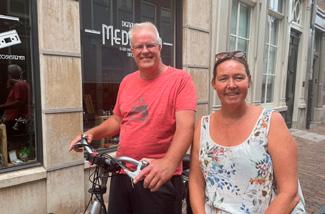 ‘We zijn hier nog maar net en hebben al zoveel moois gezien. Je moet wel in de oude stad blijven en veel naar boven kijken, vind ik. We hebben nog niet echt iets bezocht, behalve dit winkeltje hier’, vertelt Remco staande voor Media & Zo aan de Groenmarkt.
