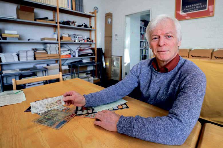 In zijn kantoor in Zwijndrecht zoekt René van alles uit over filatelie.