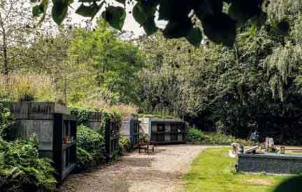 De woningen staan rond een groen middengebied, met een rijke variatie aan bomen en heesters. Alle woningen hebben natuurschoorstenen: geen echte schoorstenen, maar natuurinclusieve schuilgelegenheid voor onder andere zwaluwen, mussen en mezen. Erfafscheidingen bestaan uit groene hagen, bermen zijn ingezaaid met een bloemmengsel, een waterpartij fungeert als entree