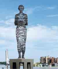 De komst van Choëphore, het twintig meter hoge beeld in het Wantij bij de Stadswerven, is een stuk dichterbij gekomen.