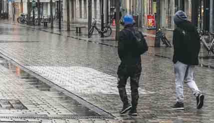 macrostructuur van de deklaag wordt verbeterd zodat de stroefheid wordt verhoogd’. Aanleidoor gladheid. De gemeente zette zelfs handhavers in om mensen te waarschuwen. Er volgde onderzoek naar de oorzaak van de gladheid en er werden proefjes gedaan met methodes om het natuursteen op te ruwen. Op de foto is goed te zien dat een behandeld proefvak minder glimmend/glad is na een regenbui. “Bij deze methode worden de stenen niet beschadigd en blijven de voegen heel”, zegt een woordvoerder van de gemeente. “We laten het hele Bagijnhof en de Visstraat tot aan de Voorstraat op deze manier behandelen. Dat gaat in delen, zodat de route zoveel mogelijk open blijft.” Op dit moment wordt de planning gemaakt voor de werkzaamheden en is nog geen tijdvak bepaald. (Foto: Stolk Fotografie)
