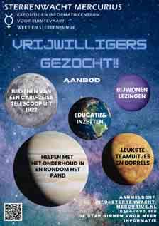 zo ontzettend veel. Ik leer iedere dag nieuwe dingen van ze. Het is ook mooi om te zien dat ze binnen de sterrenkunde allemaal ook hun eigen interesse of talent hebben. Sommigen vinden het leuk om rondleidingen te geven of bezoekers te begeleiden, maar er zijn ook vrijwilligers die astrofotografie cursussen geven en ze helpen ook graag mee aan klusjes aan het pand. Overigens zijn nieuwe vrijwilligers van harte welkom in ons sterrenwachtteam. Naast een hoop gezelligheid kunnen vrijwilligers gratis de lezingen bijwonen en mogen ze de unieke antieke Carl Zeisstelescoop bedienen uit 1922.”
