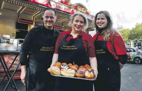 George, Helen en hun dochter Romy bij de Dordtsche Gebakkraam die sinds 12 oktober weer is geopend de Bieshof.