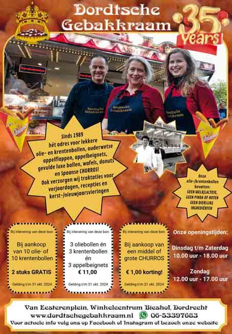 De Dordtsche Gebakkraam is ook dit najaar en komende winter weer te vinden op het Van Eesterenplein bij winkelcentrum Bieshof. Inwoners van Stadspolders, maar ook liefhebbers uit andere wijken, weten de sfeervolle kraam van George en Helen Reemer prima te vinden. En dat al 35 jaar. Hoe het allemaal begon…