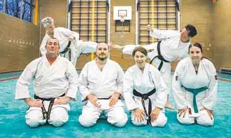 haald. “Ik hoef eigenlijk alleen maar te kijken om de rust terug te doen keren.” Leanne Groen (70), zwarte band 1e dan, heeft hetzelfde. “Ik heb tot mijn 67e full time op een basisschool gewerkt. Vanaf mijn 26e doe ik aan karate. Het onderwijs is een stressvolle beroepstak. Ik heb veel collega’s overspannen zien worden. Dat heb ik nooit gehad. Karate heeft me geholpen om een goede balans te houden en ook om weerbaar te zijn tegenover soms behoorlijk mondige kinderen en hun ouders.”