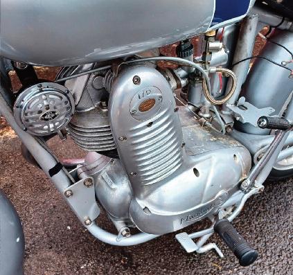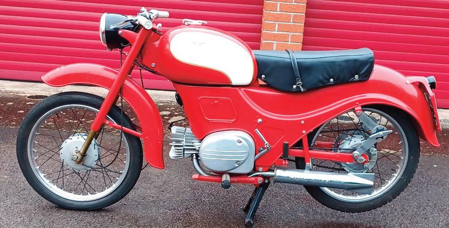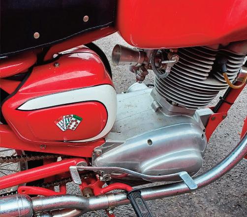 The Sei Giorni sported a 124cc OHV 9hp single cylinder engine with a claiimed top speed of 72mph The 1961 model was sold in red and white livery, later Speciale models from 1964 being presented in a black and white colour scheme instead