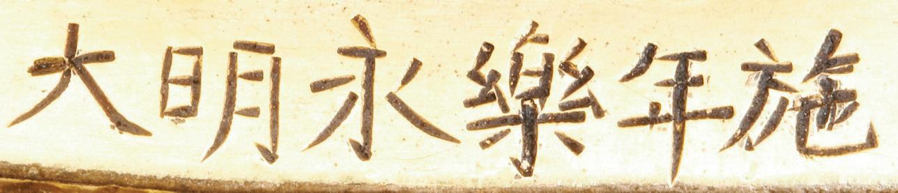 The artists working in the imperial workshops during the Yongle period remain anonymous, but their sculptures have now become recognised as being among the most important works of art from the Buddhist world Some fifty-four gilt bronzes bearing the inscription Da Ming Yongle nian shi (bestowed in the Yongle era of the great Ming) have been documented in Tibetan monastery collections, see Ulrich von Schroeder, Buddhist Sculptures in Tibet, Hong Kong, 2001, vol II, pp 1237-1291