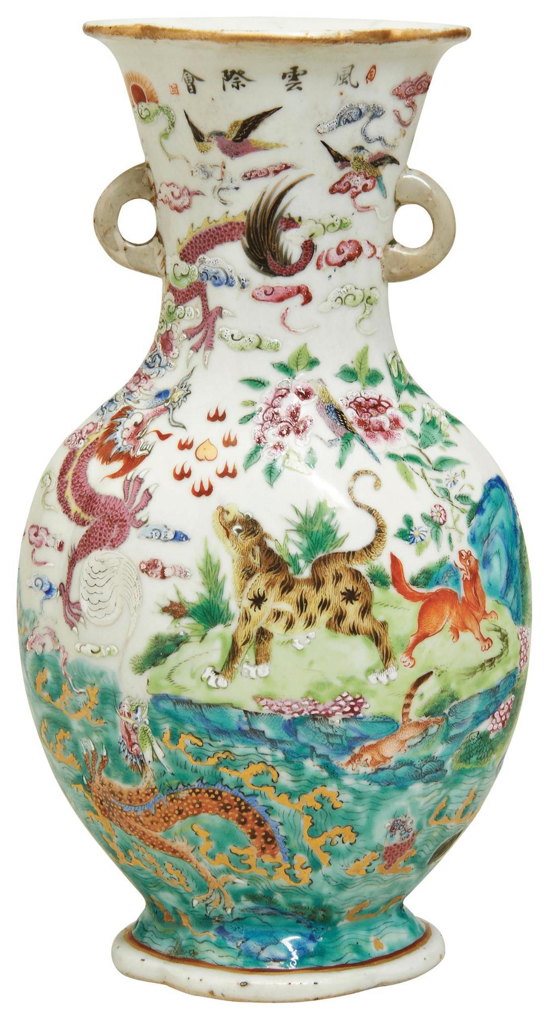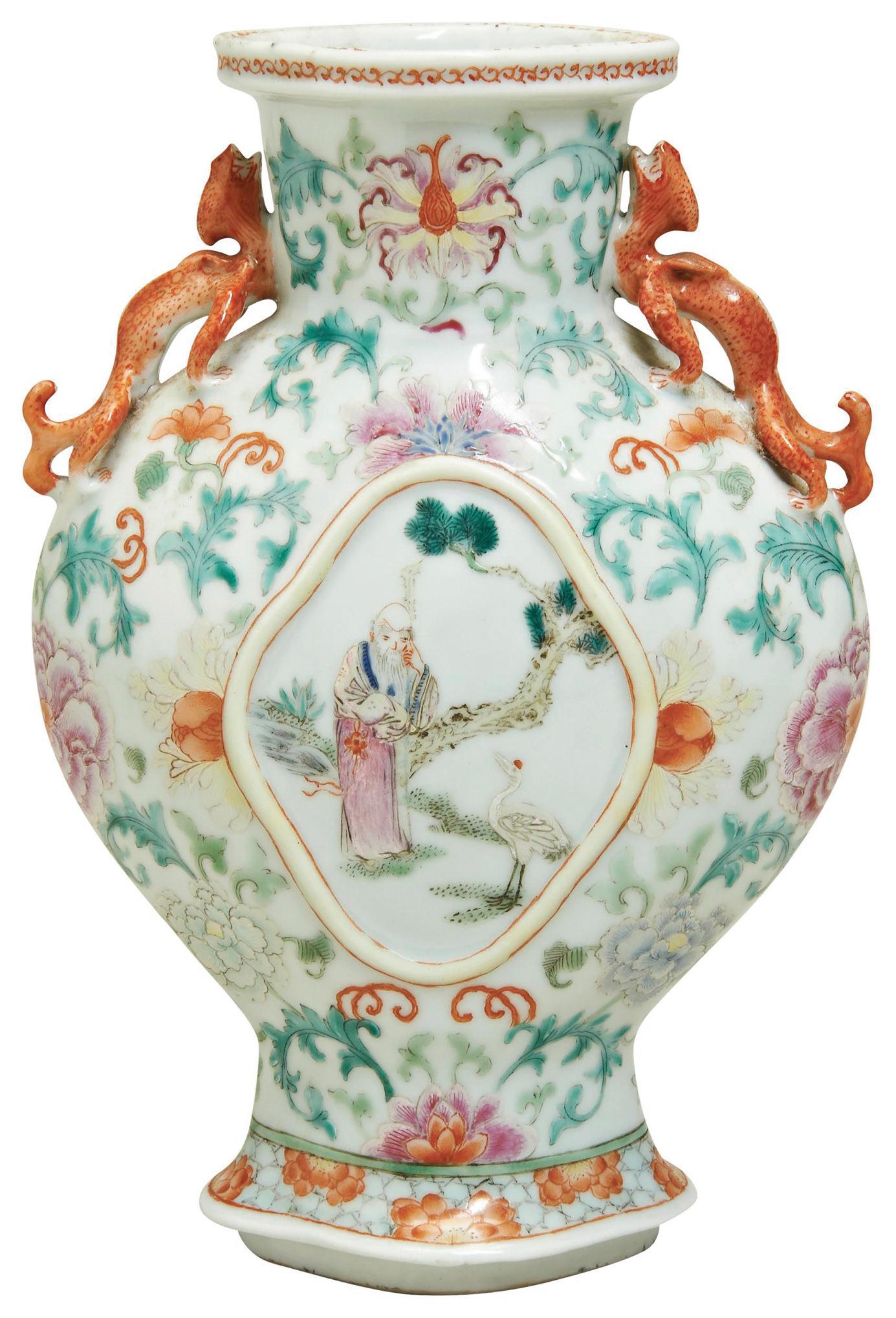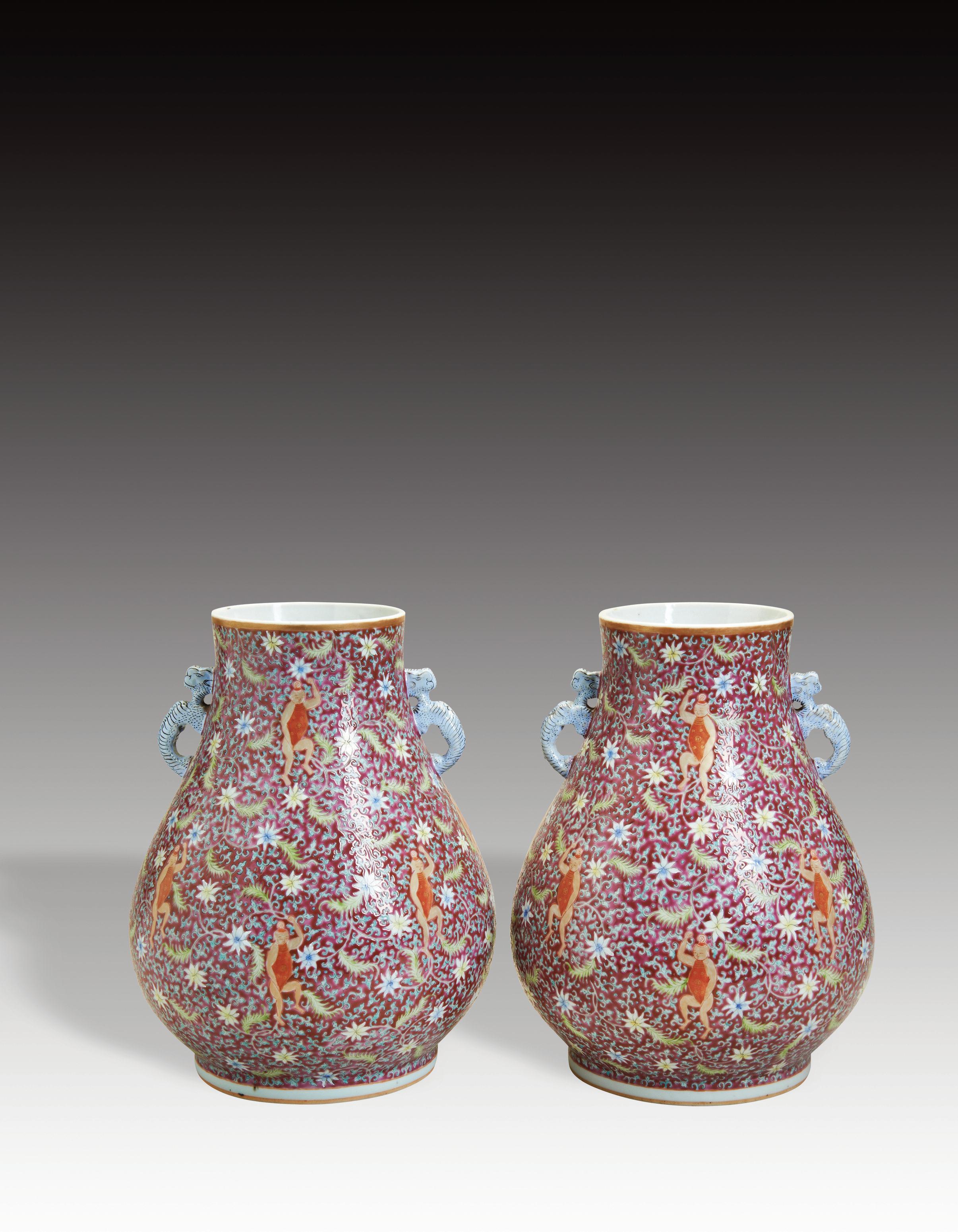 QING DYNASTY, 18TH / 19TH CENTURY 清 十八/十九世纪 松石绿釉双鱼瓶