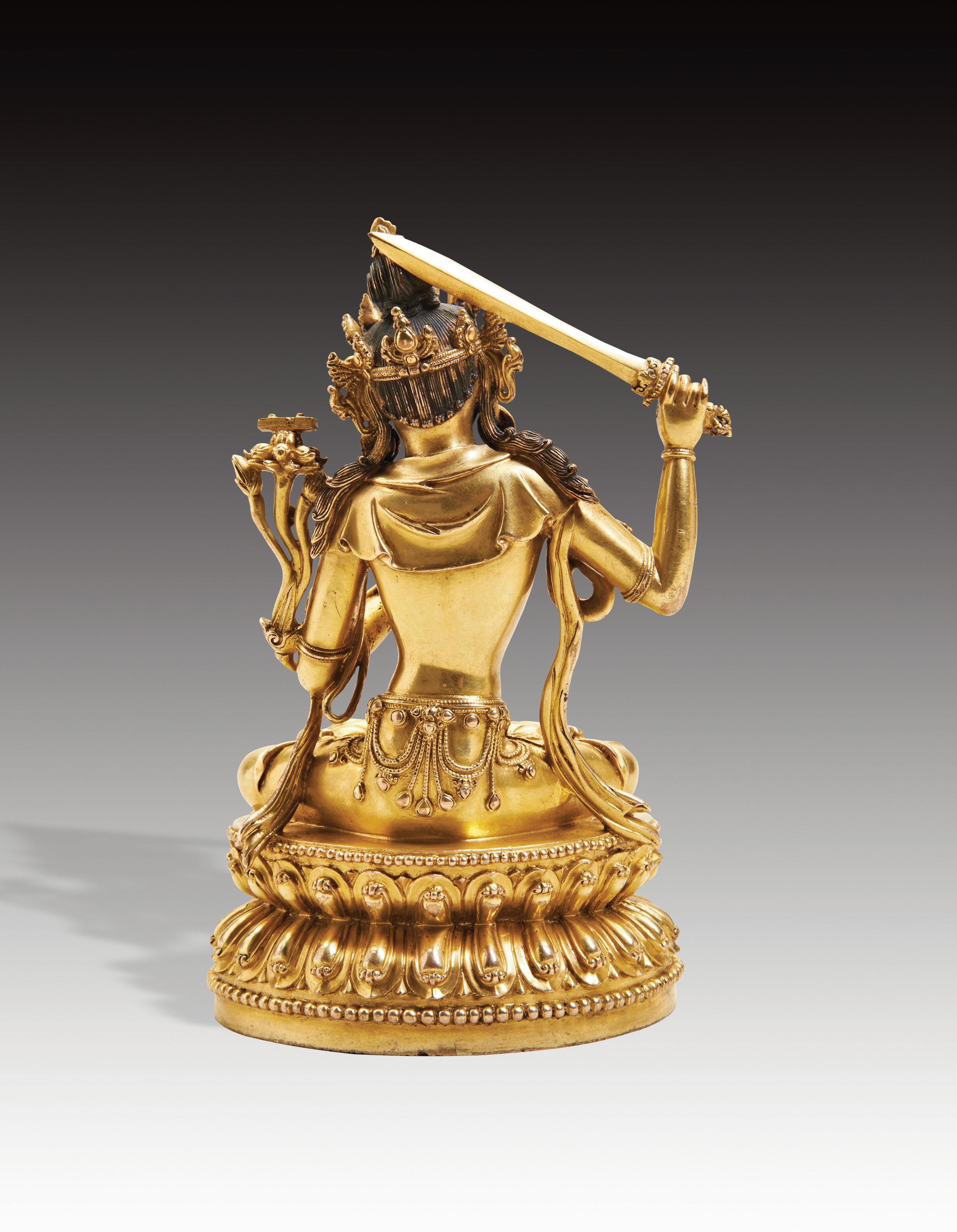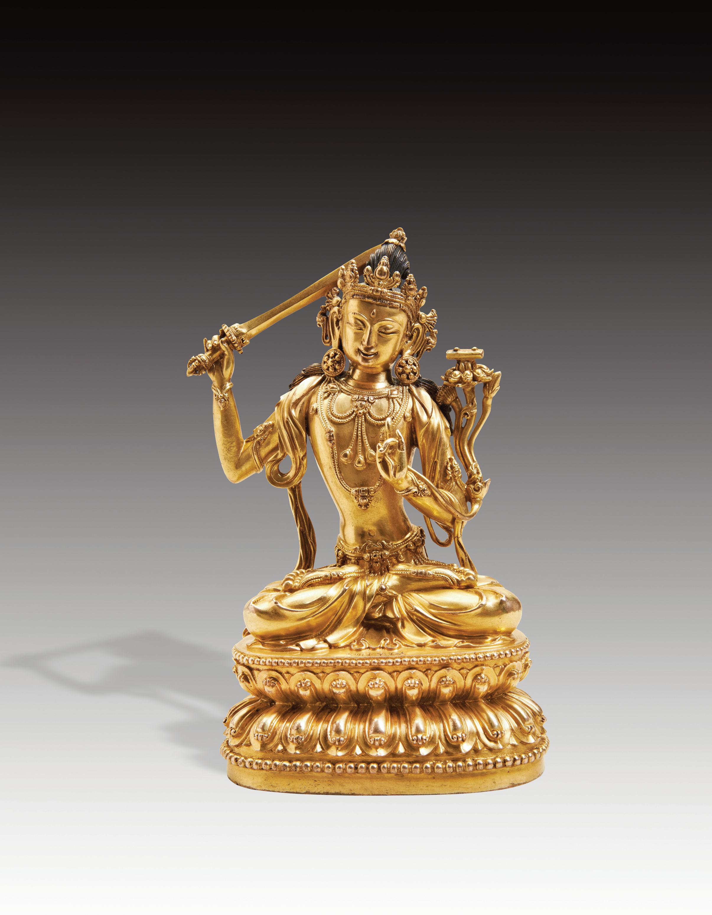SIX CHARACTER MARK AND PROBABLY OF THE PERIOD 明 铜鎏金文殊造像 ' 大明永乐年制'刻款