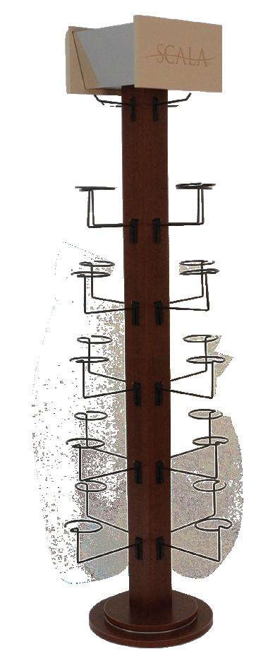 Dark Wood Laminate Spinning Hat Rack with Angled Acrylic Mirrors Holds 24-60 Hats | 29” W x 29” D x 75” H