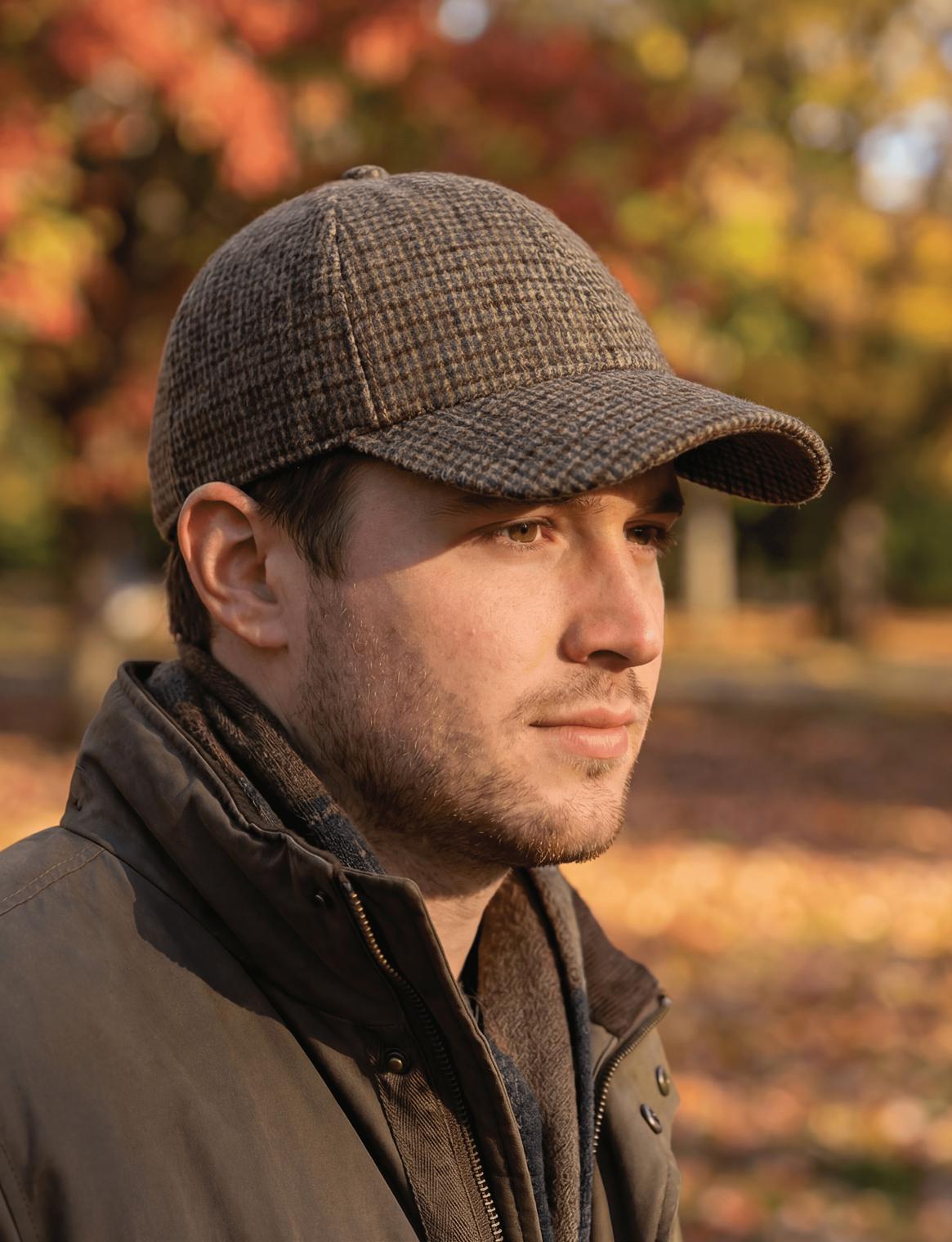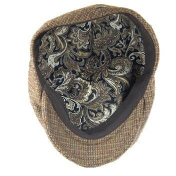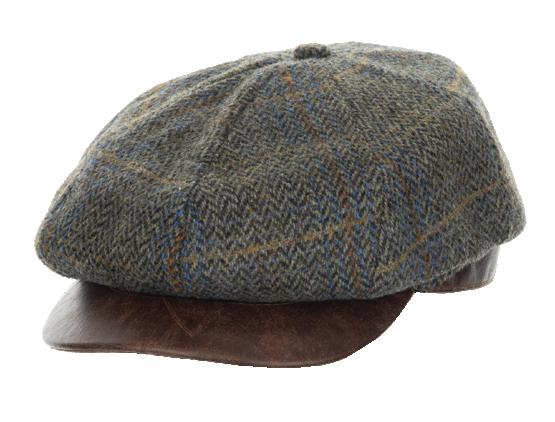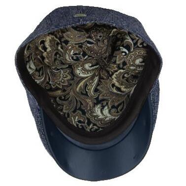 Herringbone Wool Blend Ivy Cushion Front, Vegan Leather Peak, Print Lining Stitched Twill Sweatband