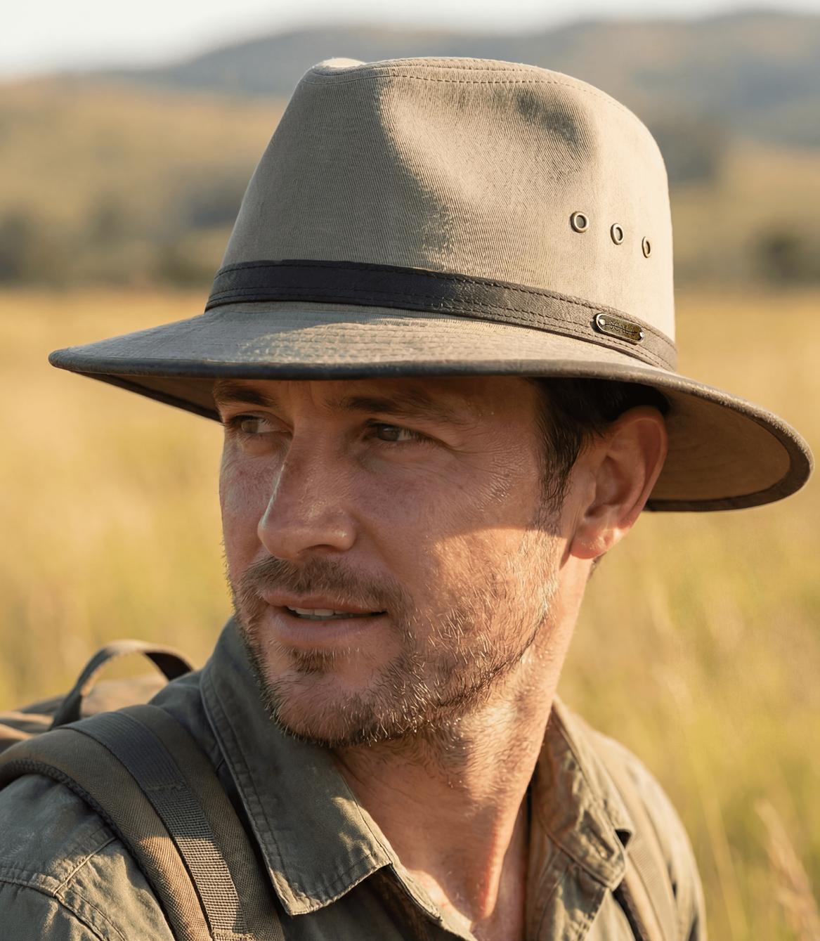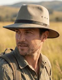 Brushed Nylon Blend Outback with Shapeable 3” Brim Adjustable Fit Toggle, Chin Cord Cloth Sweatband