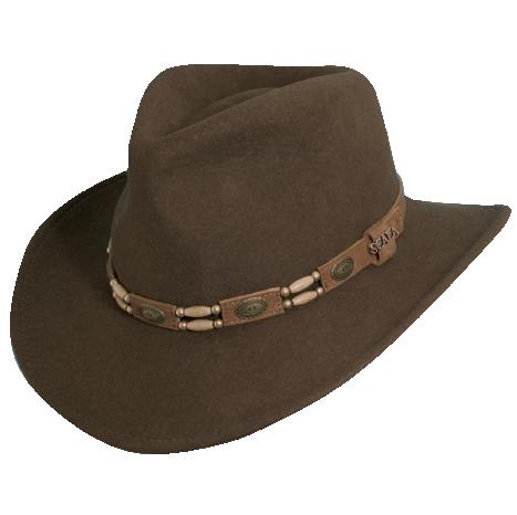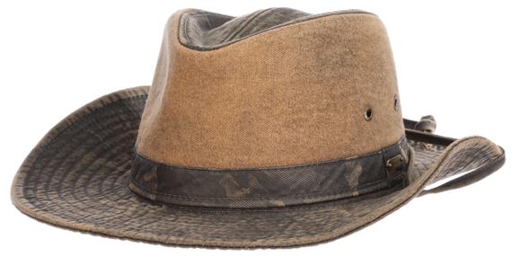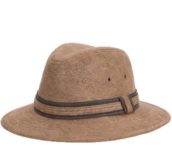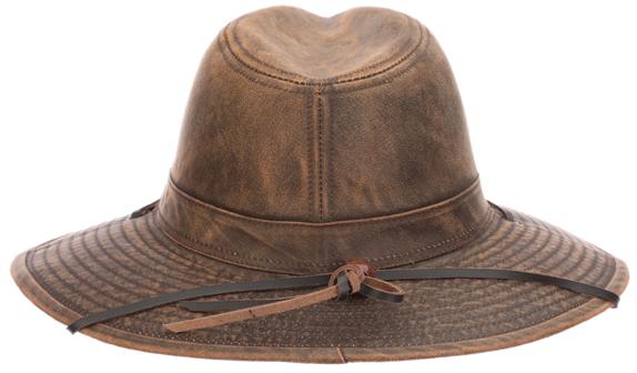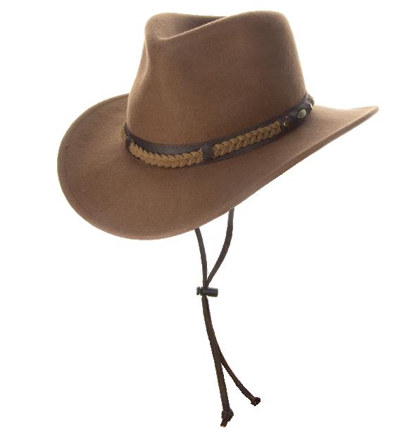 Vegan Leather Outback with Shapeable 3” Brim Vegan Leather Band, Removable Chin Cord Stitched Twill Sweatband Sold by Color 1 Pc. L-XL: Camel 98IMW