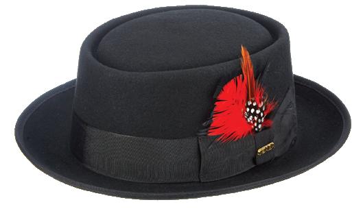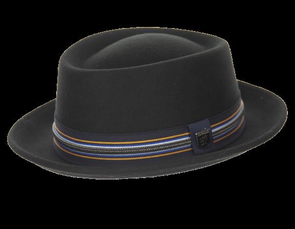 Wool Felt Porkpie with 2 1/4” Brim Zip Closure, Lined Grosgrain Sweatband