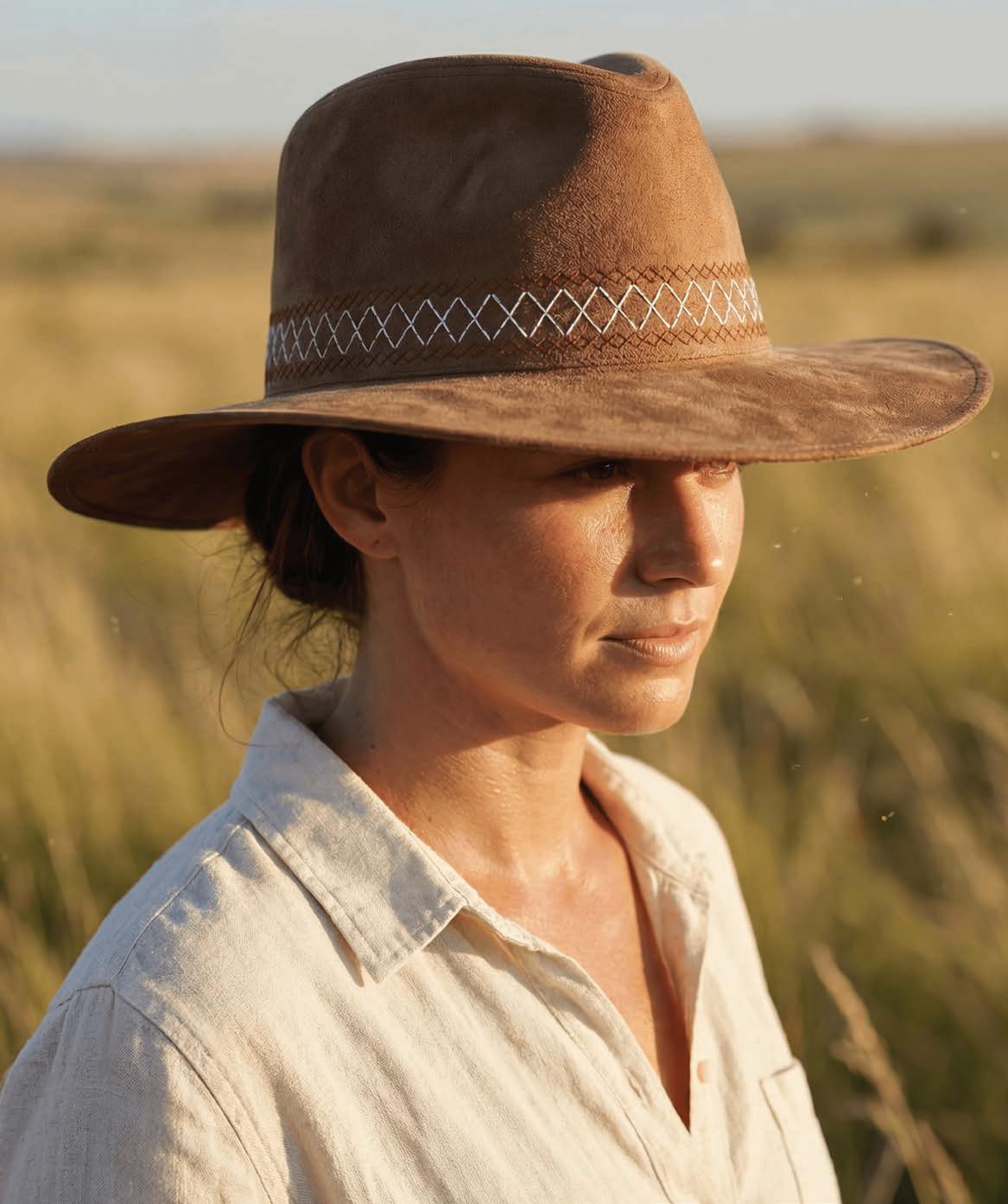 Vegan Suede Safari with 3 3/4” Brim Stitching