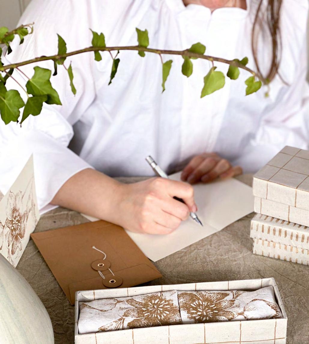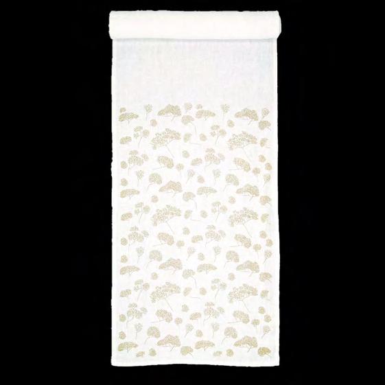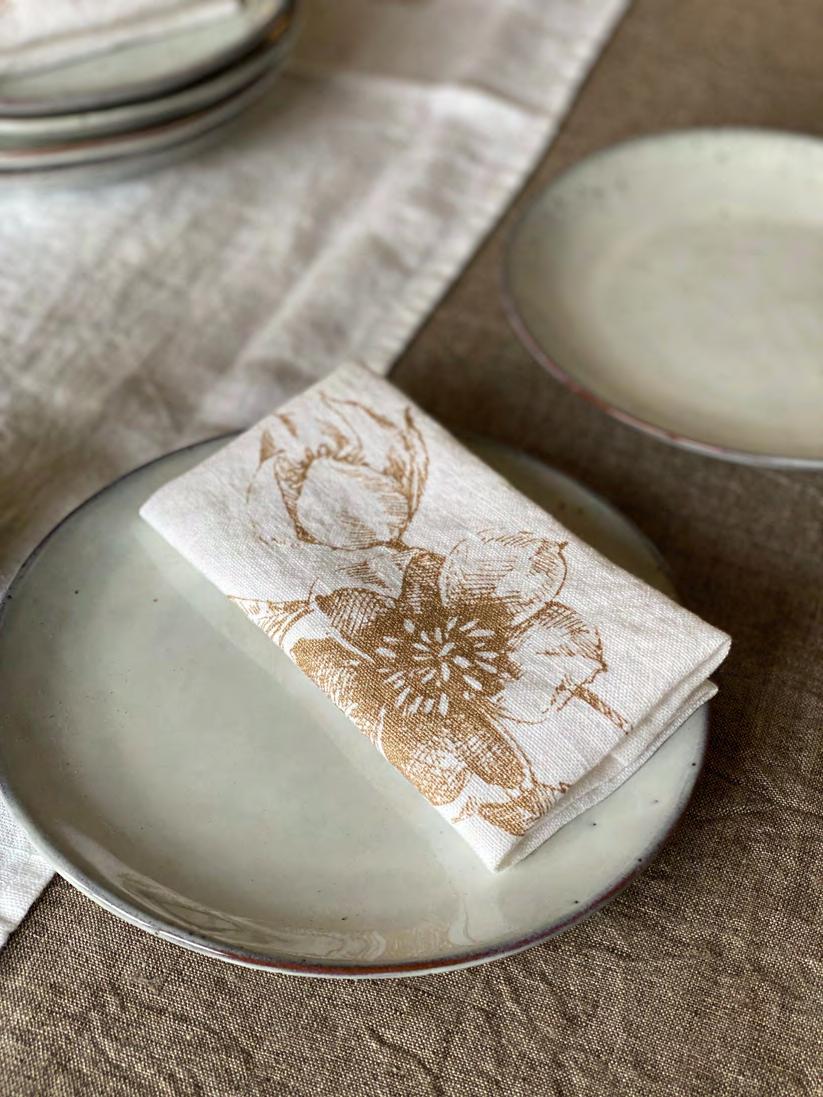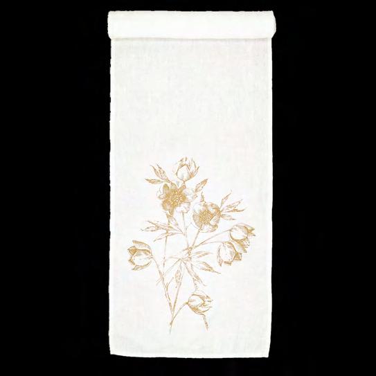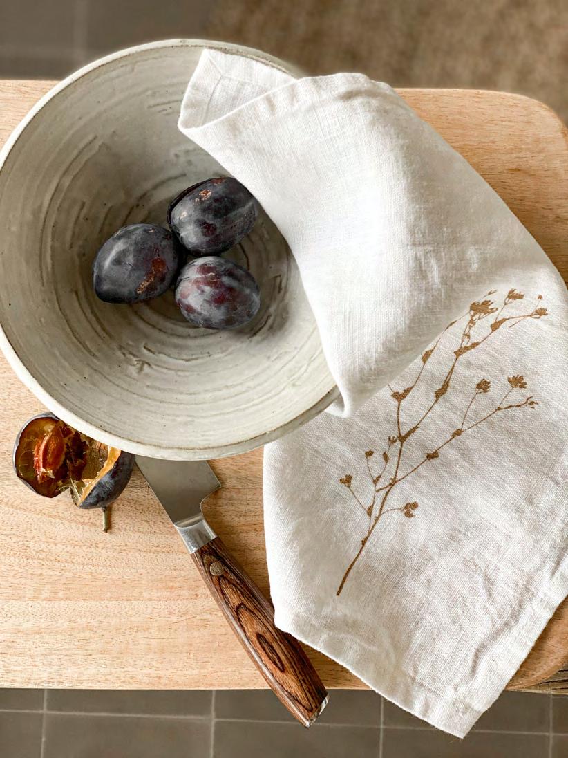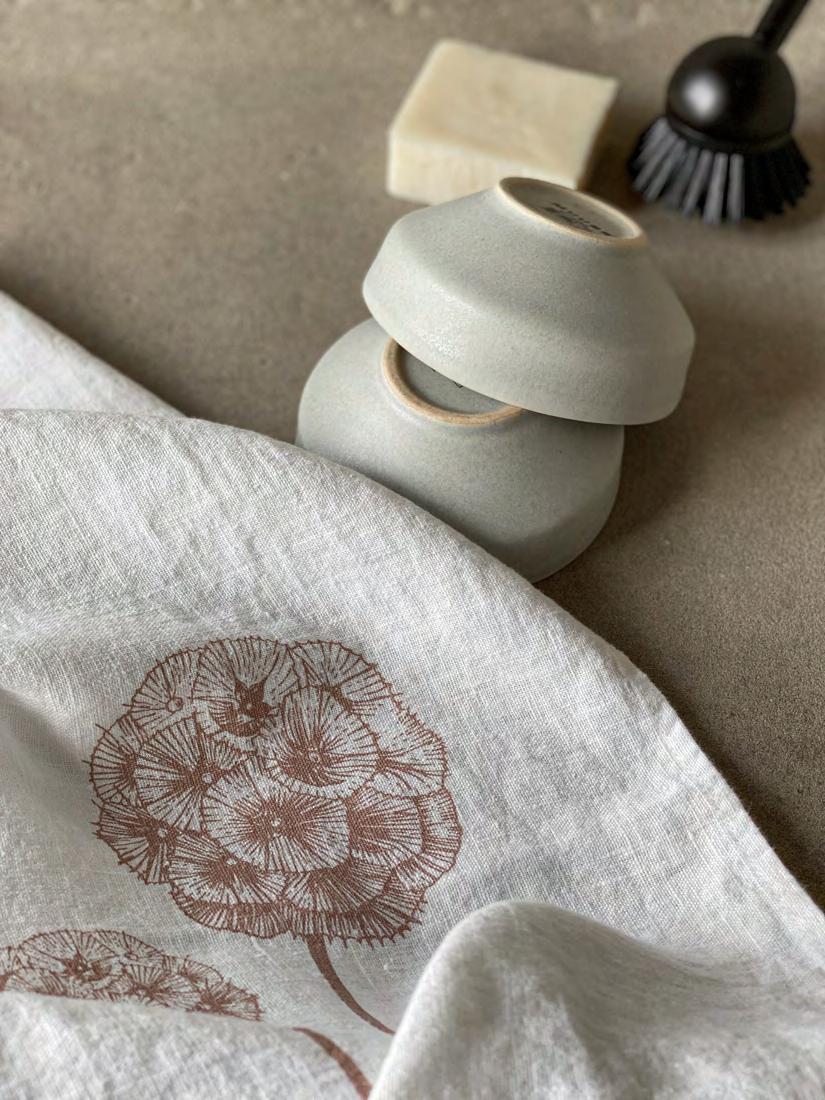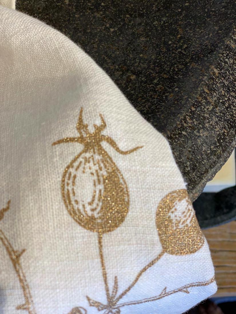 Printed by hand with ecological colours and motifs that remind us to the meadows at the studio.