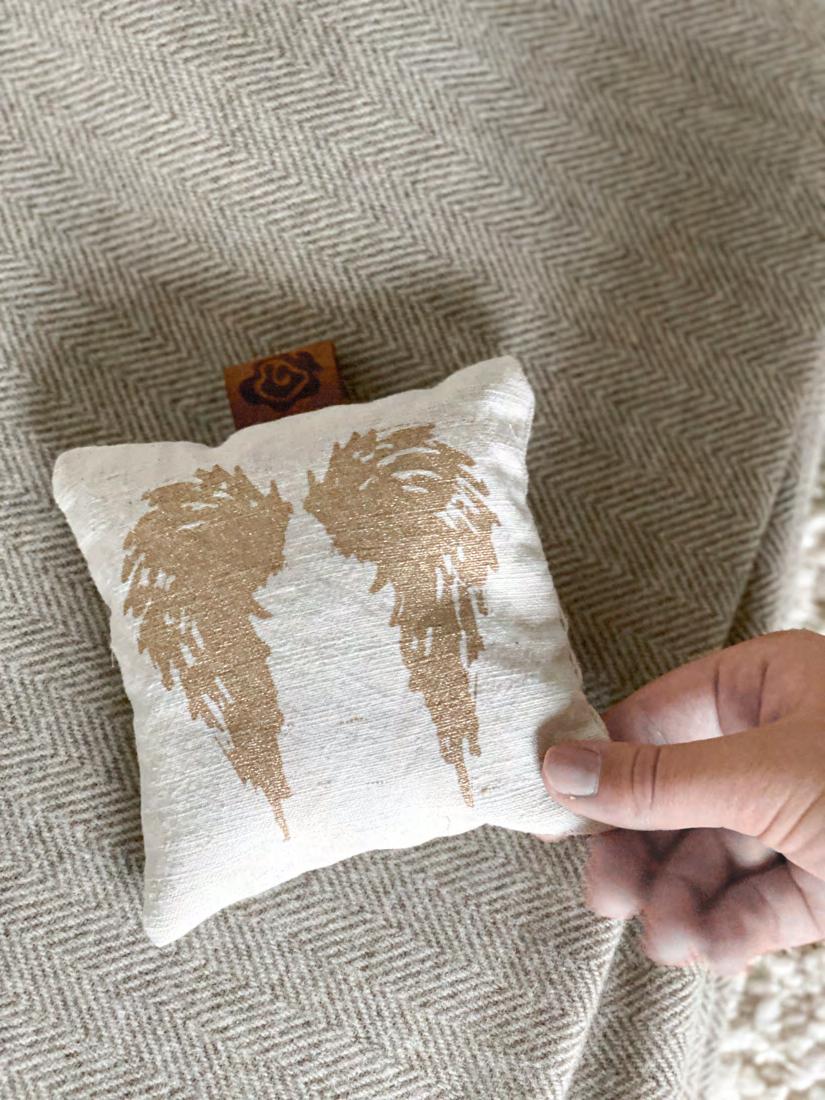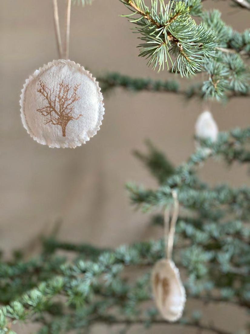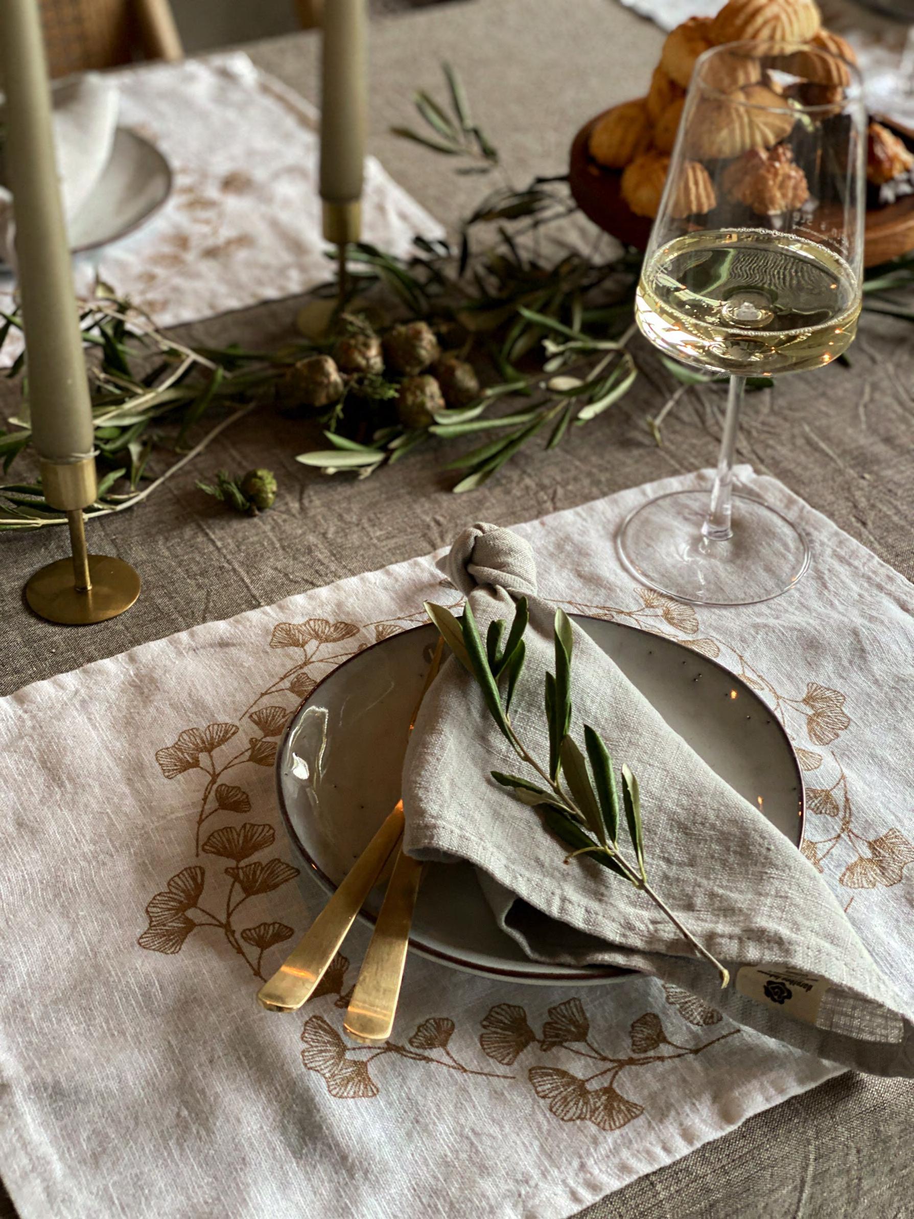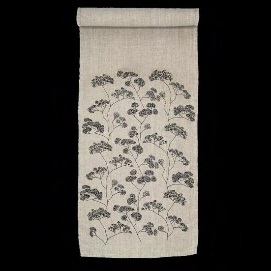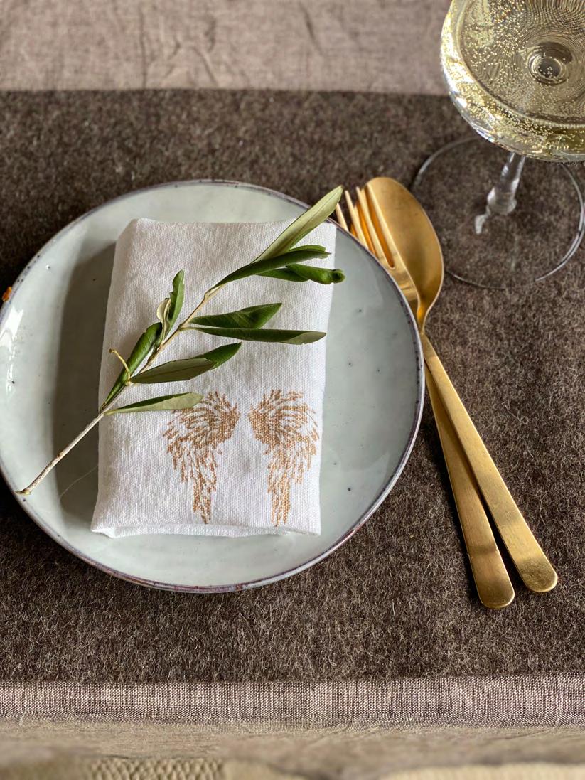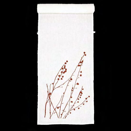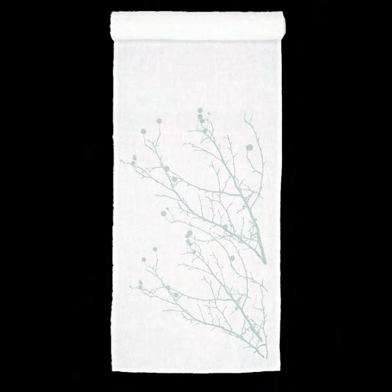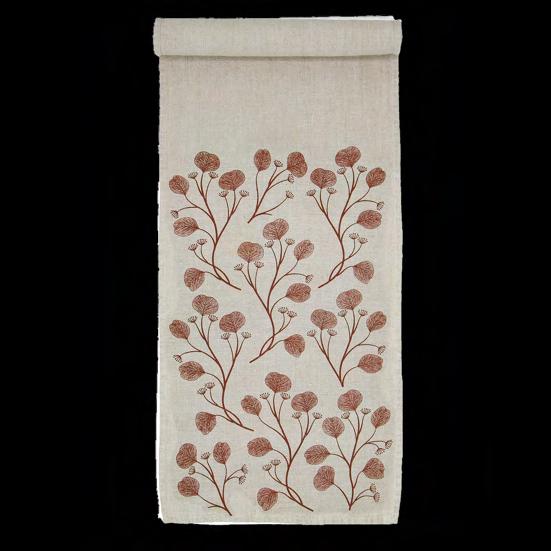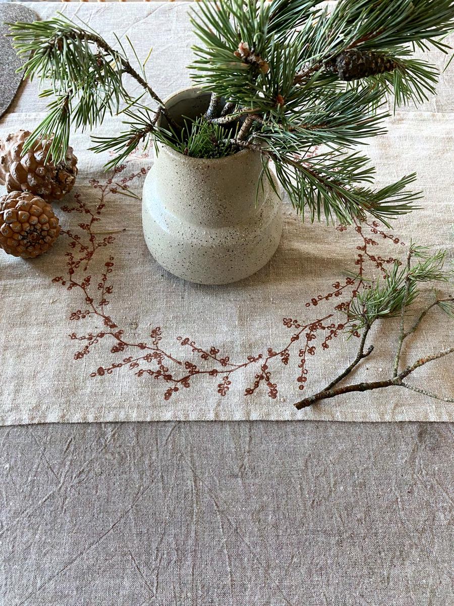 Printed by hand with ecological colours and motifs that remind us to the meadows at the studio.