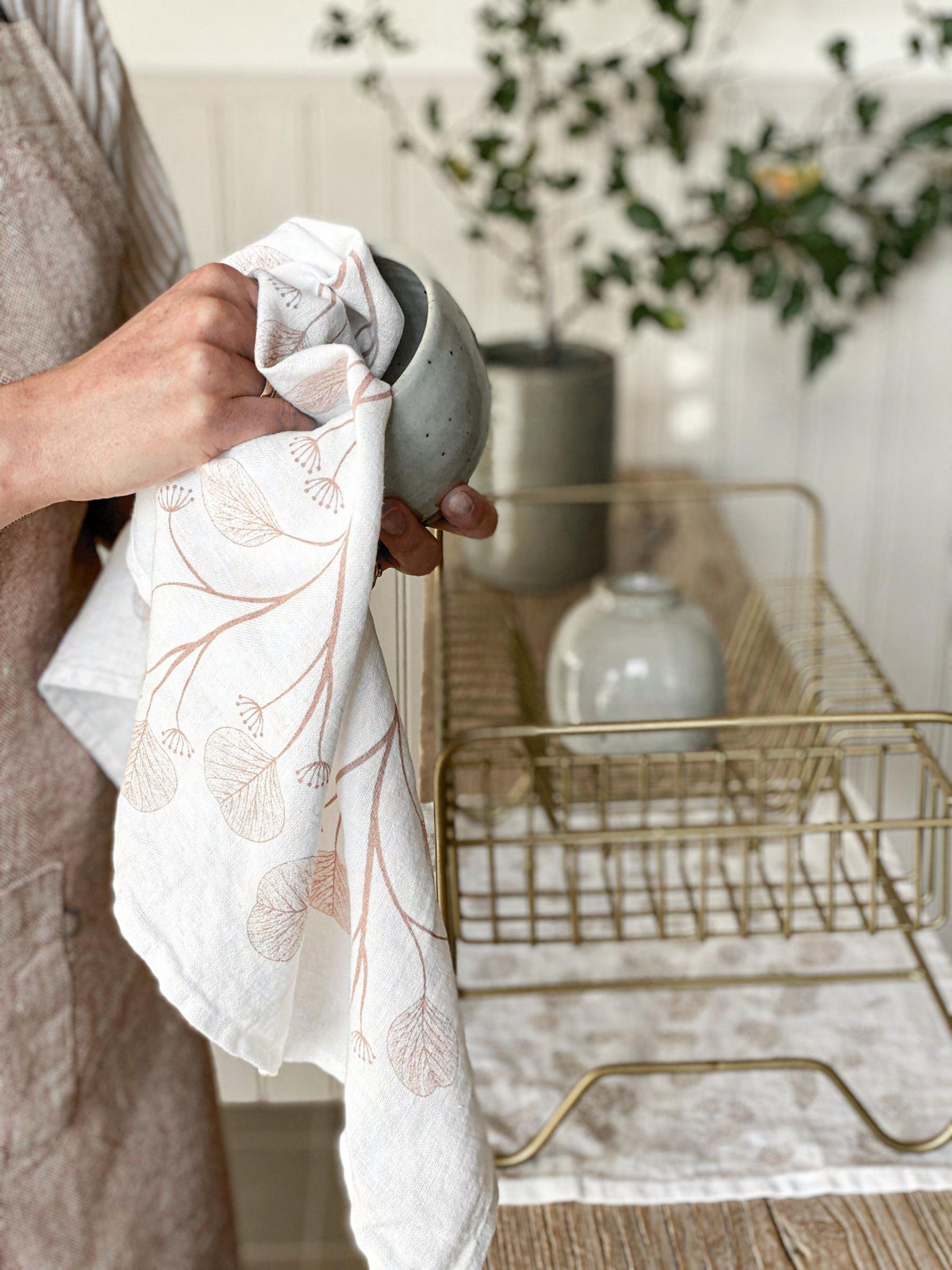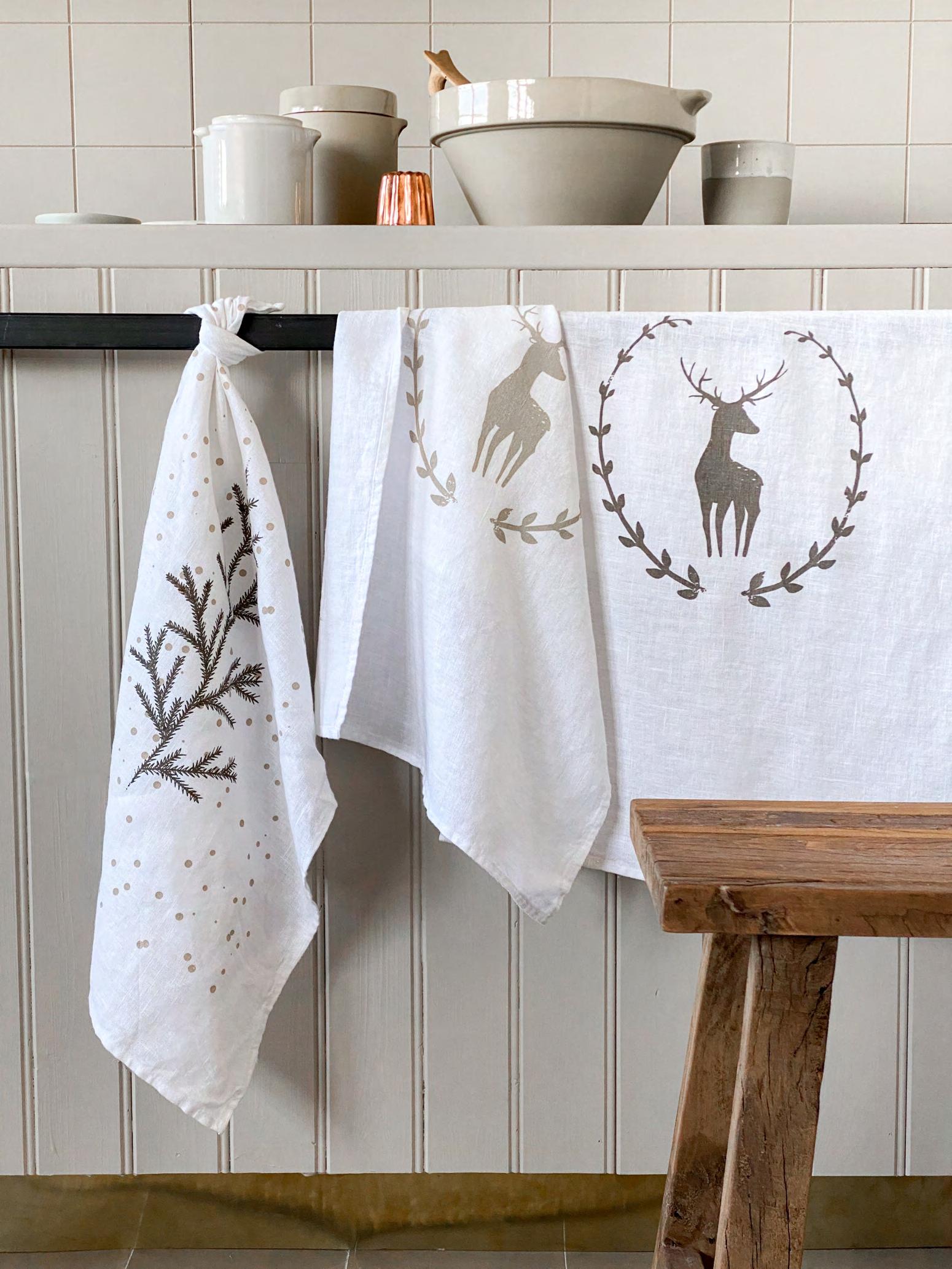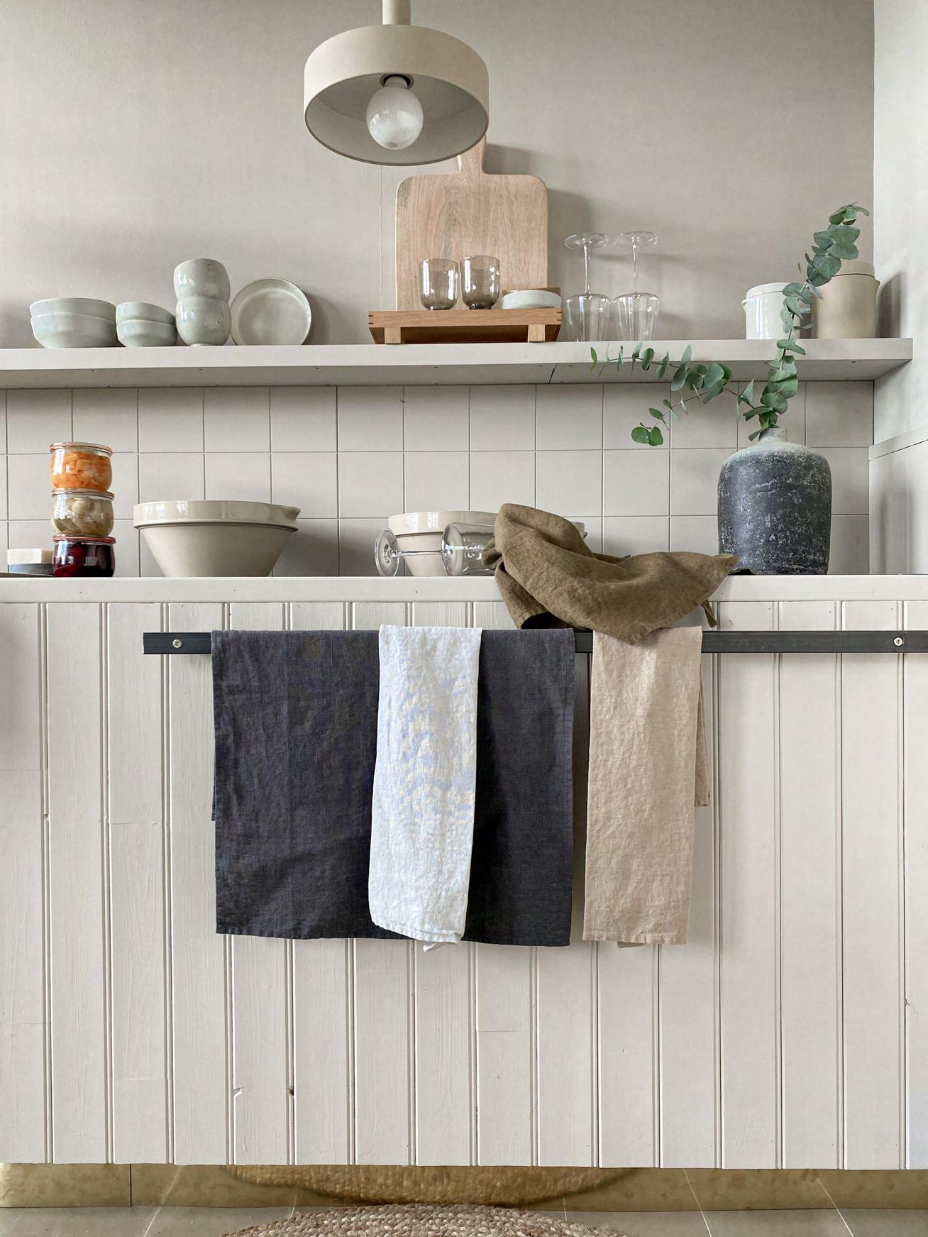 Linen towels are a must, because they are antibacterial, hard-wearing and lint-free.