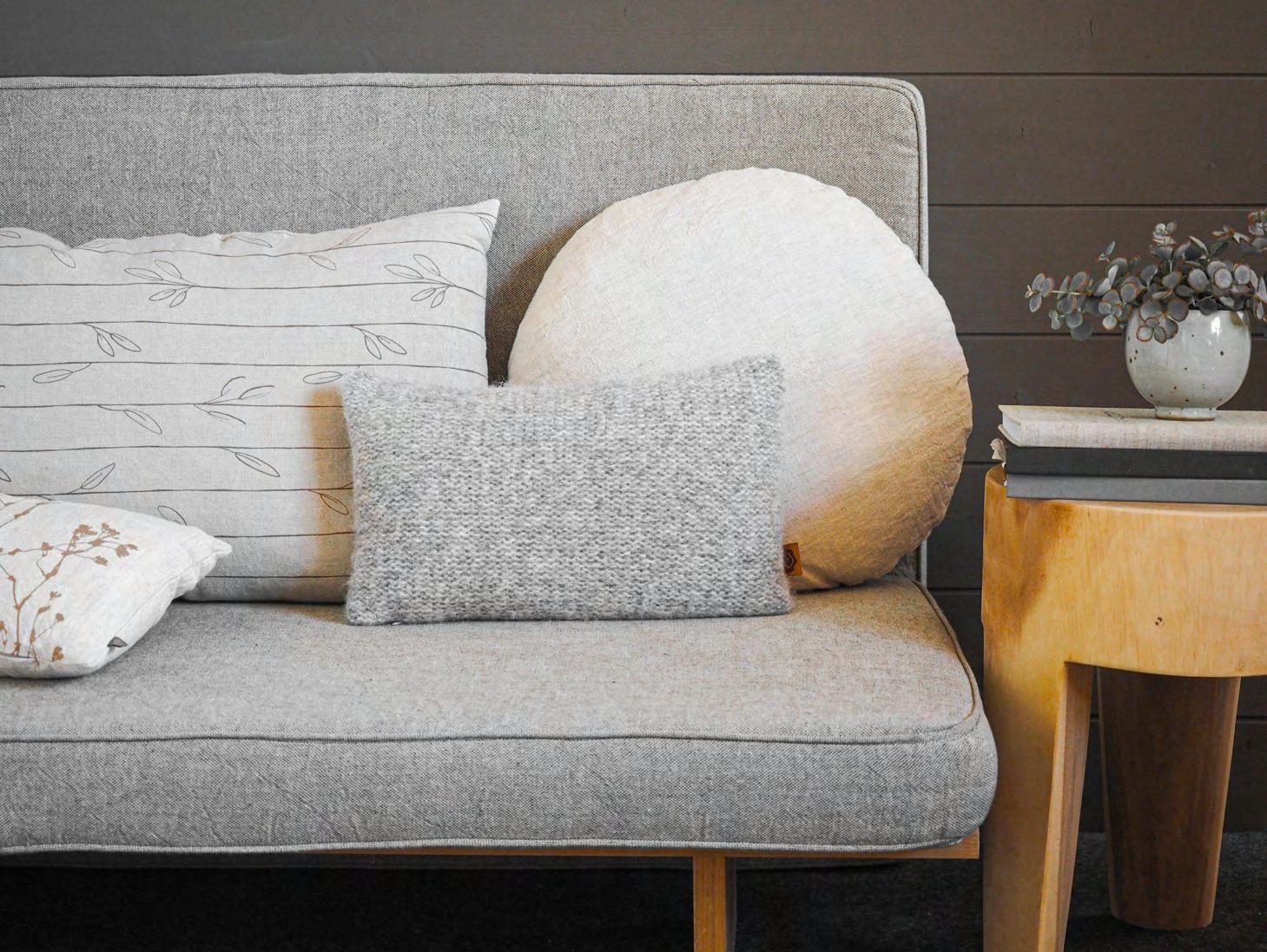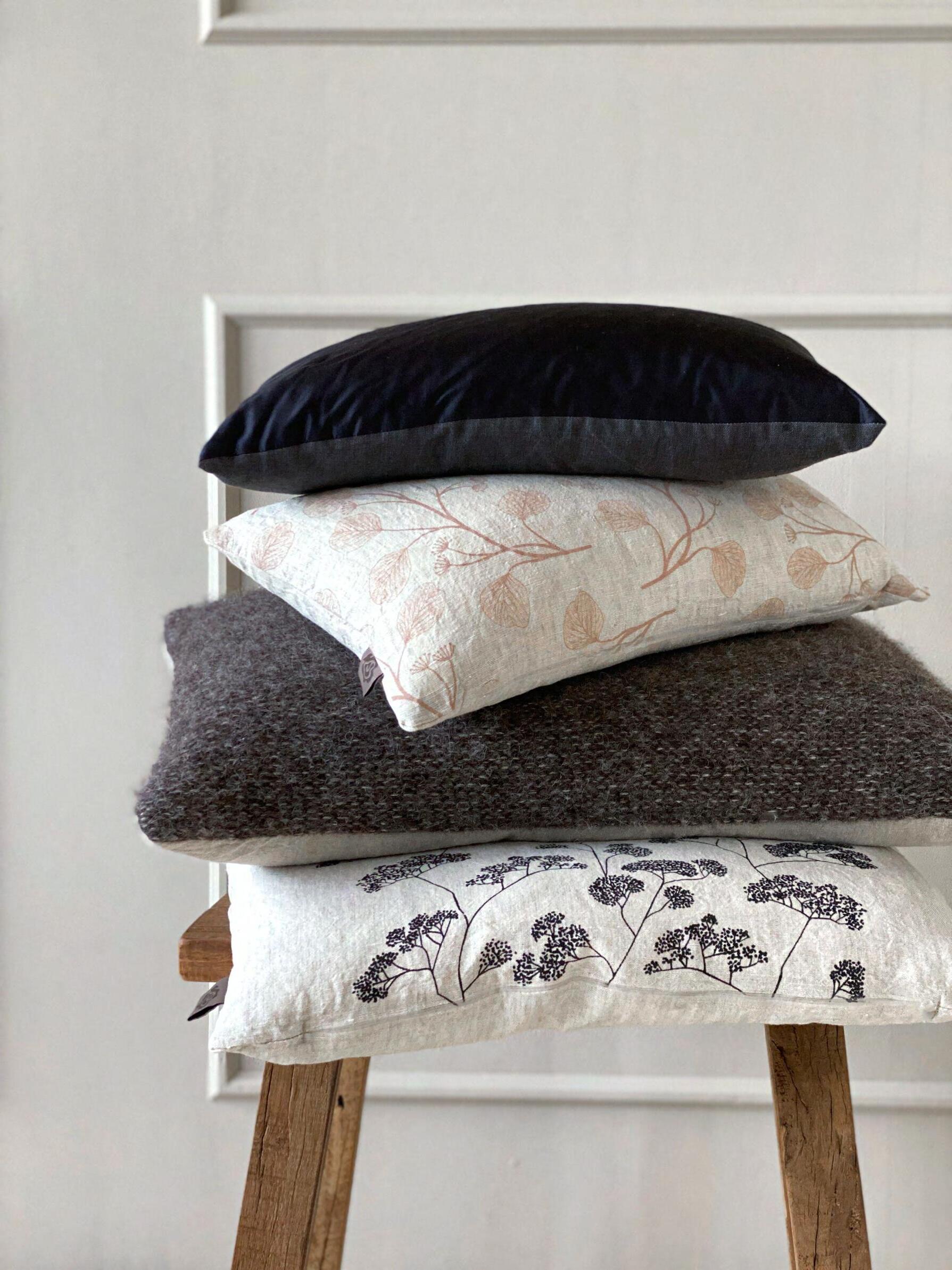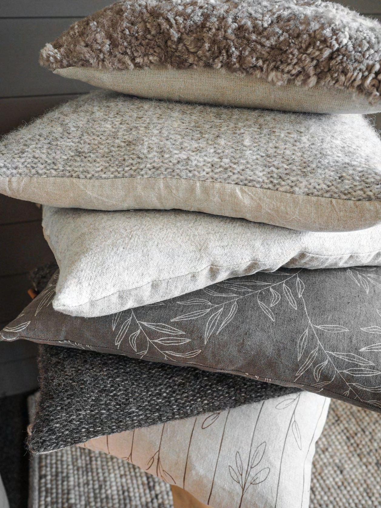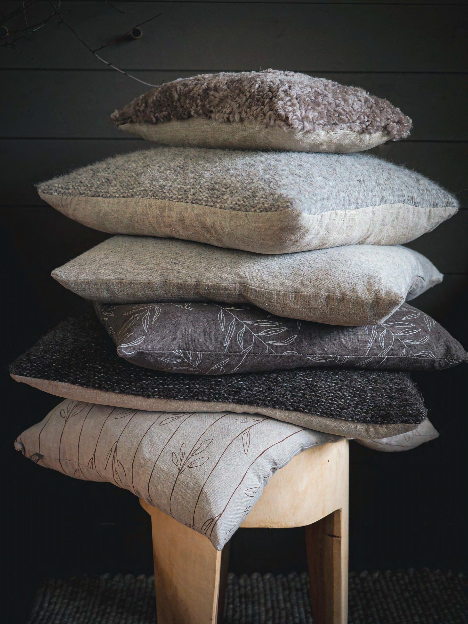 Alte Filzreste geben dieser Linie die Stabilität. Sie werden mit einem gekochten Gewebe aus Leinen und Wolle bezogen. Das passt wunderbar zum Stil moderner Menschen mit hochwertigem und nachhaltigem Look.
