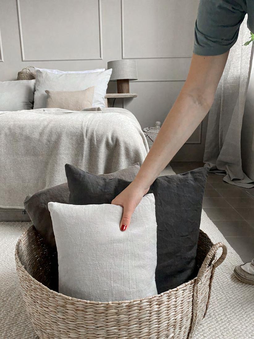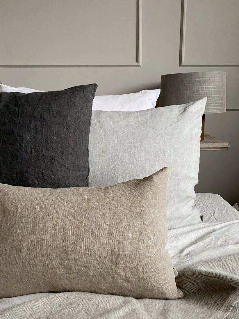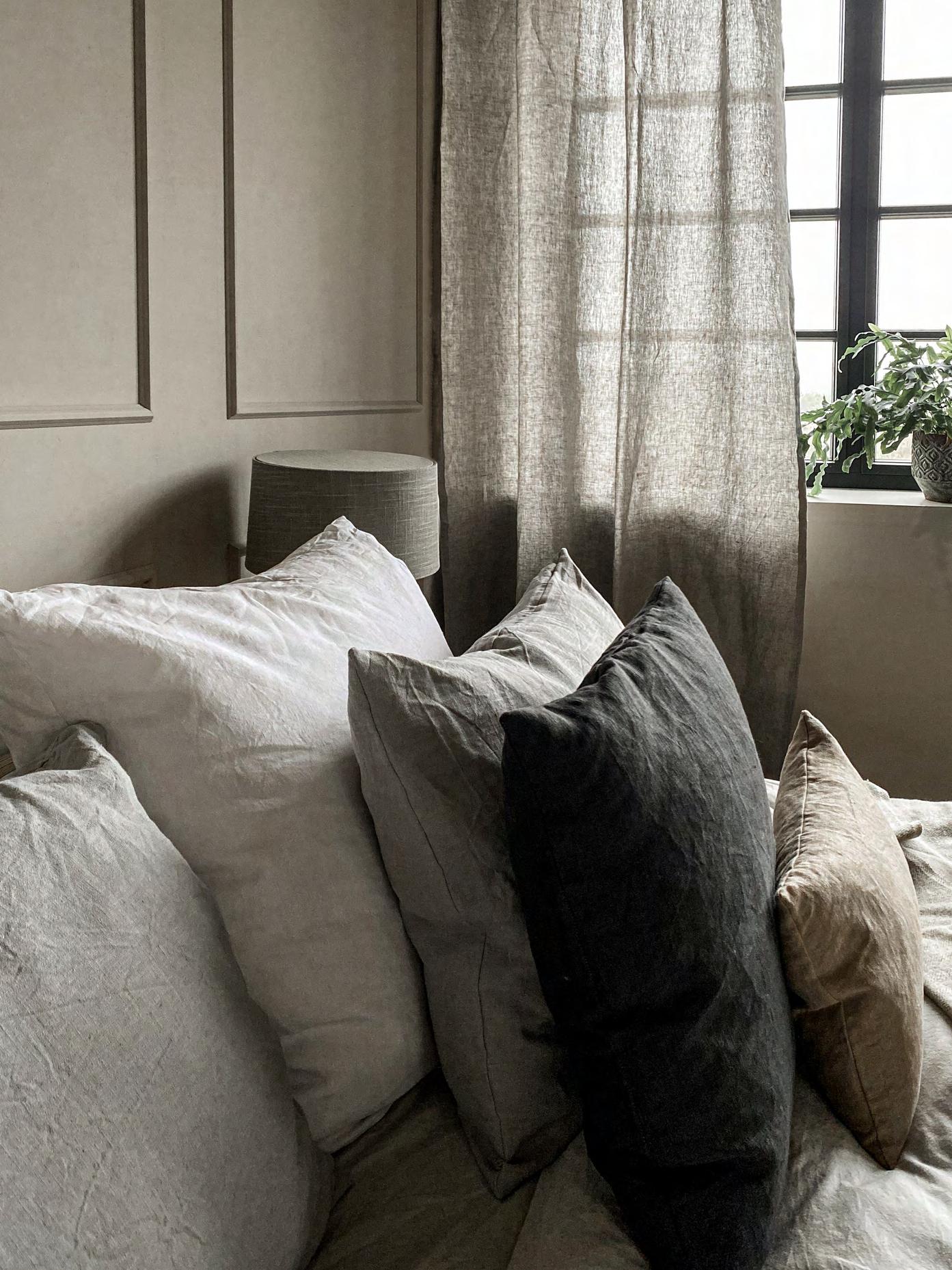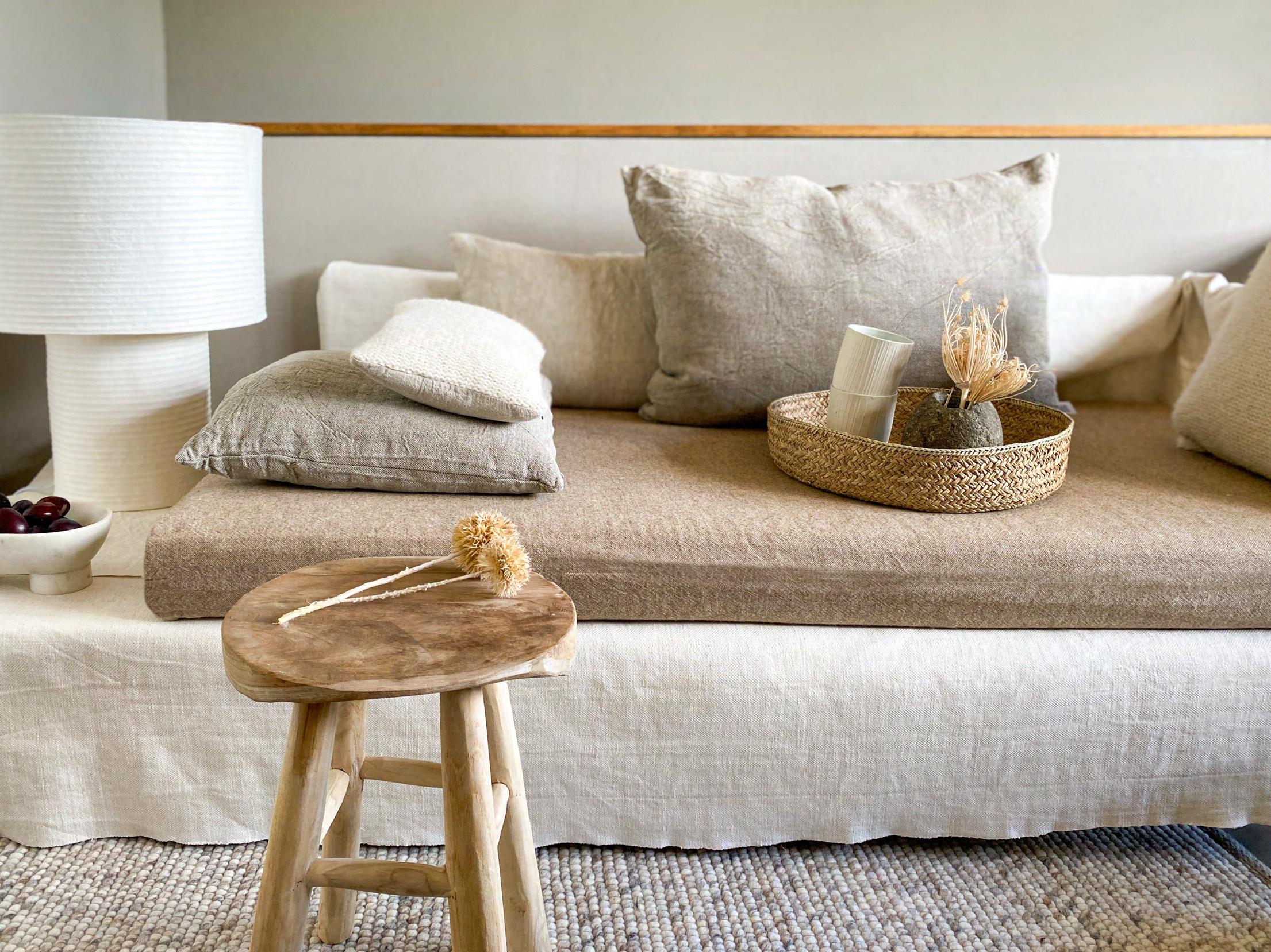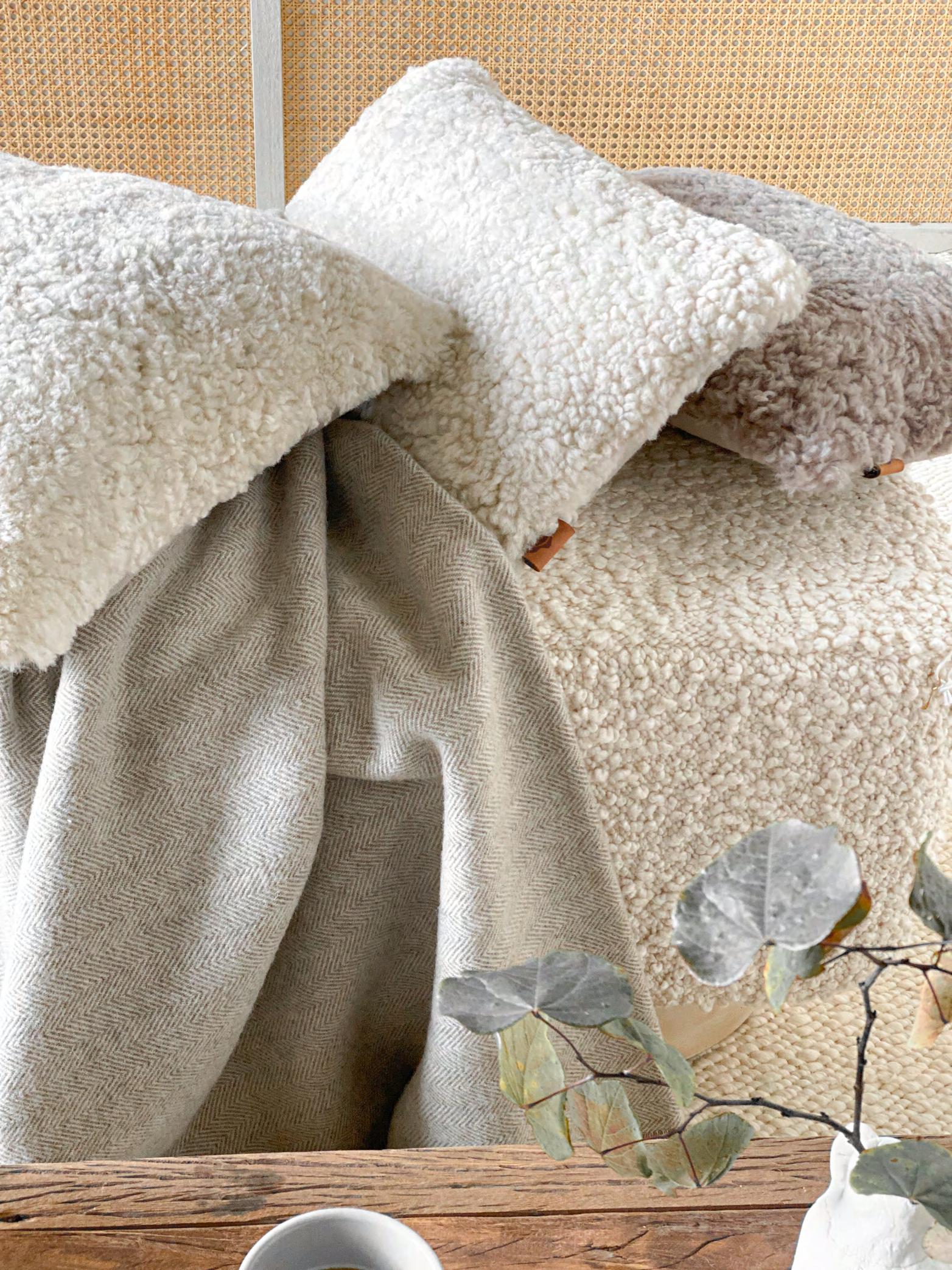 Alte Filzreste geben dieser Linie die Stabilität. Sie werden mit einem gekochten Gewebe aus Leinen und Wolle bezogen. Das passt wunderbar zum Stil moderner Menschen mit hochwertigem und nachhaltigem Look.