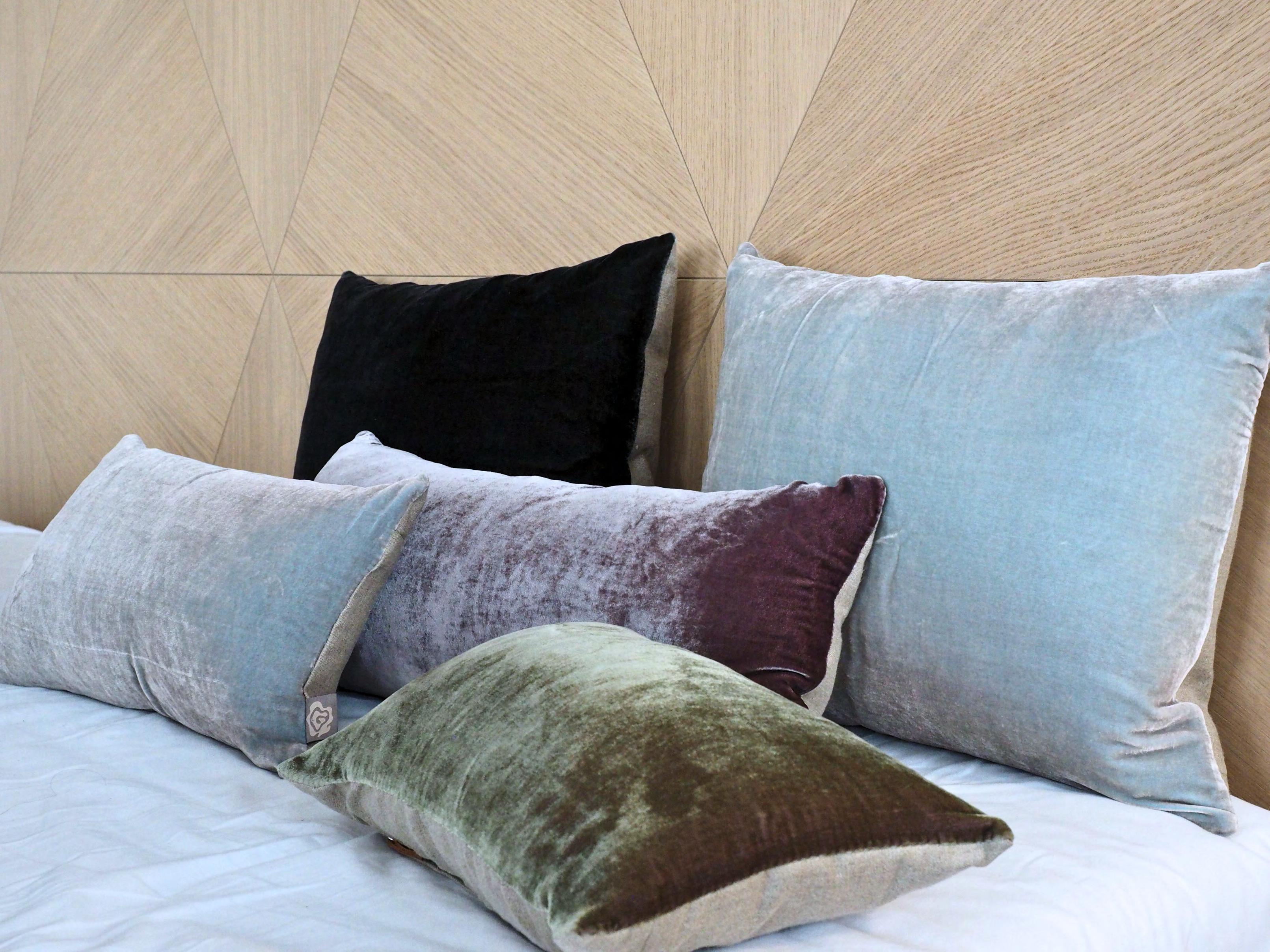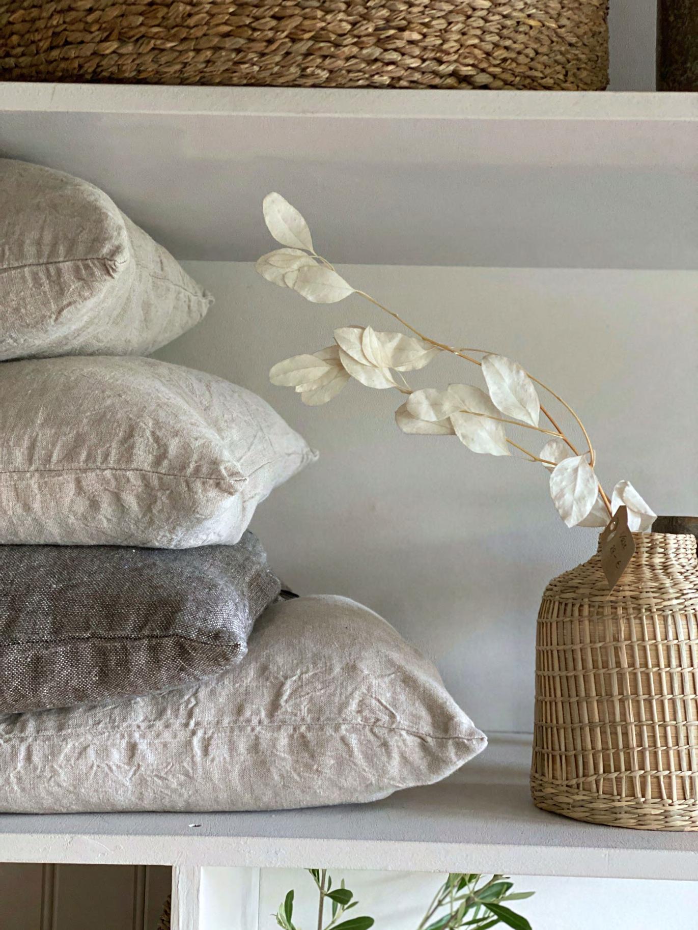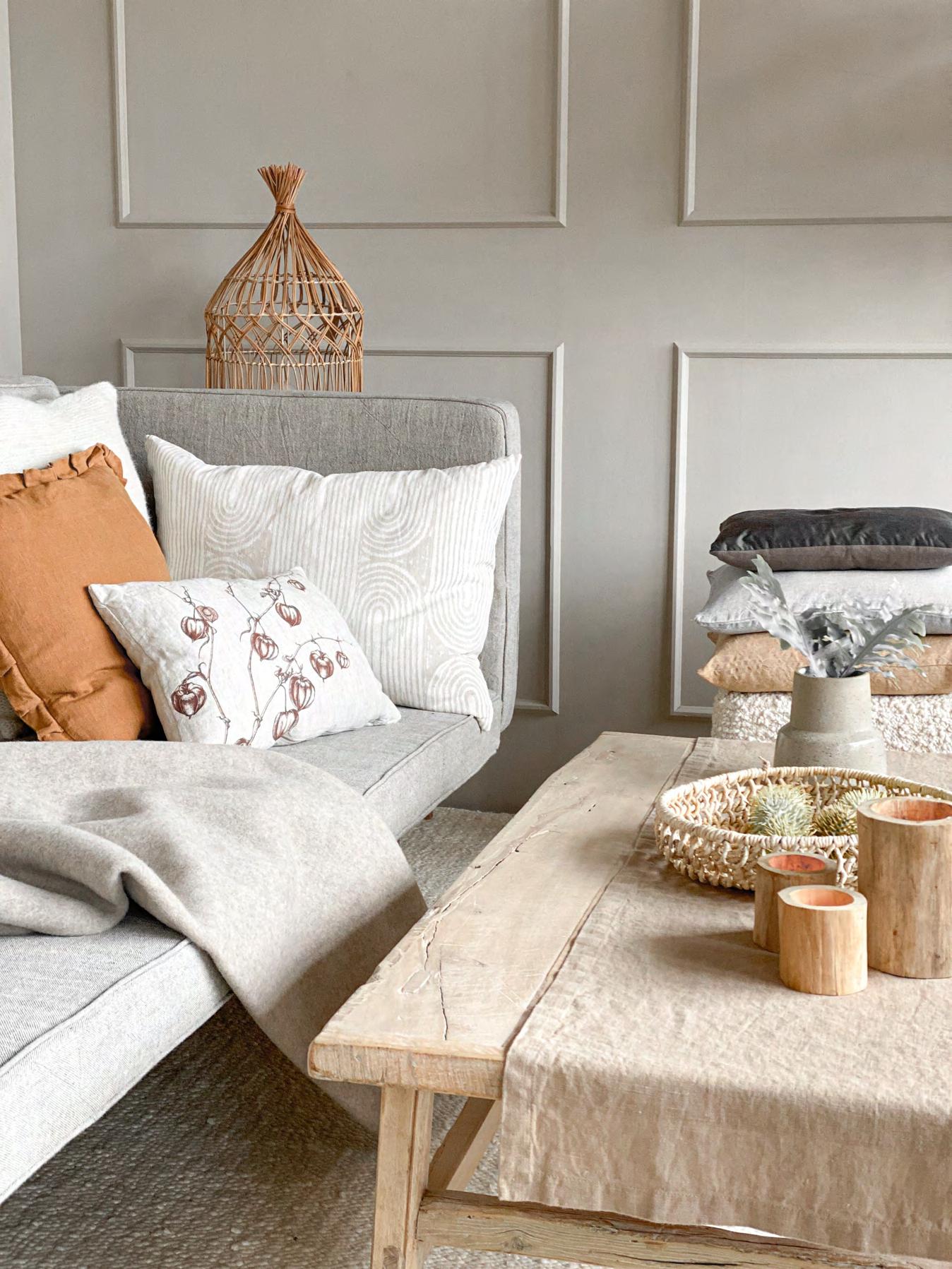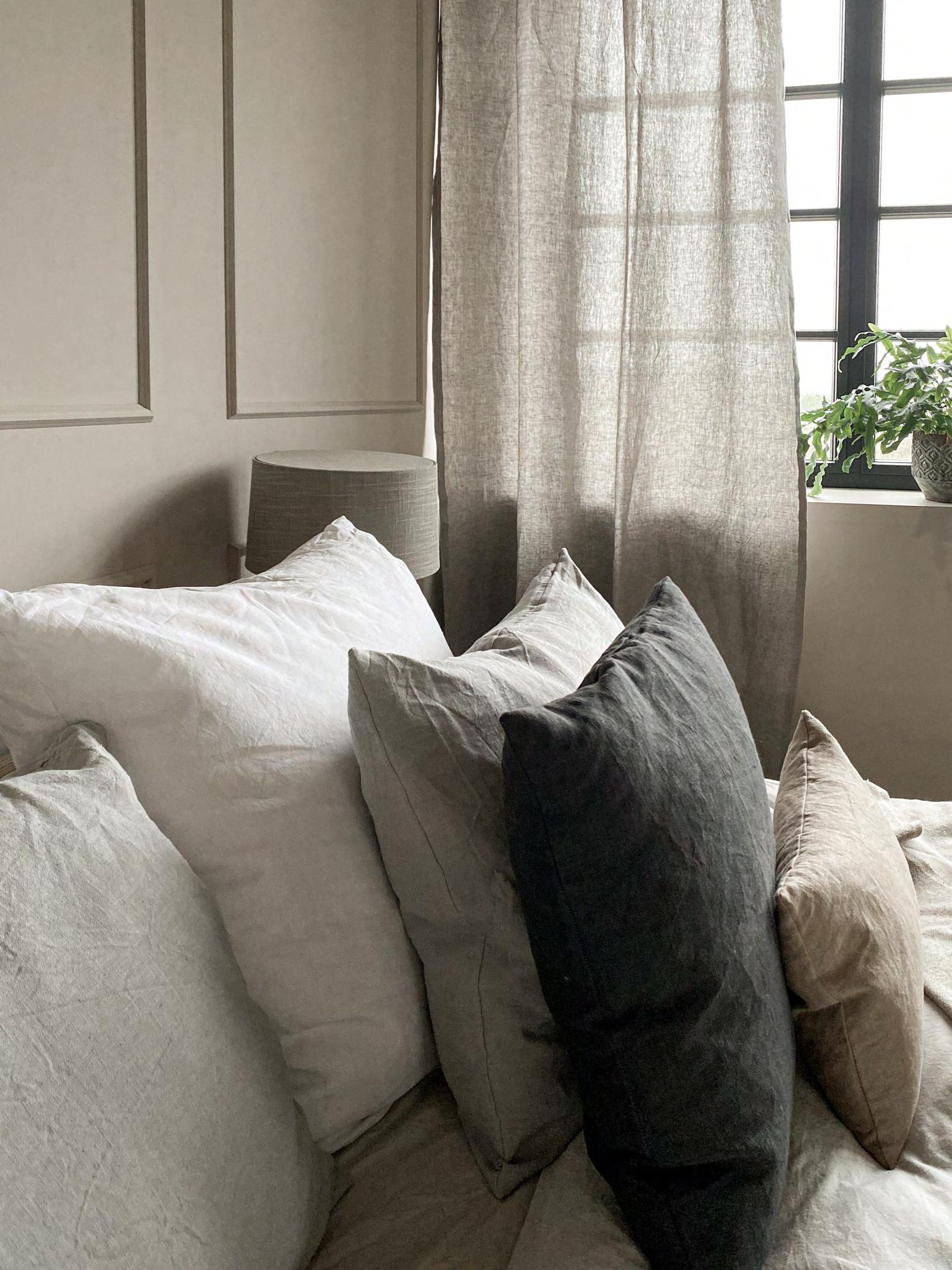 Alte Filzreste geben dieser Linie die Stabilität. Sie werden mit einem gekochten Gewebe aus Leinen und Wolle bezogen. Das passt wunderbar zum Stil moderner Menschen mit hochwertigem und nachhaltigem Look.