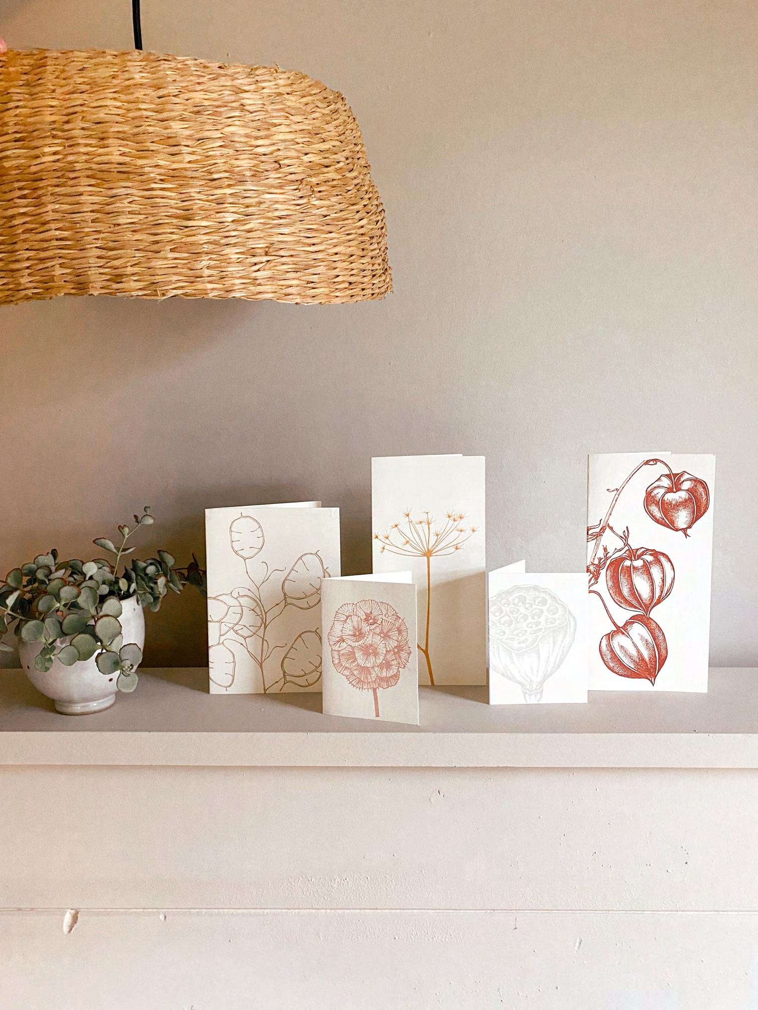 DieGrußkartenausunseremAtelierwerdeneinzelnvonHandbedruckt. Dasmachtsiesoindividuellundpersönlich. DieschönenfloralenMotiveeignensichfürjedenAnlass,obtraurigoder fröhlich.
