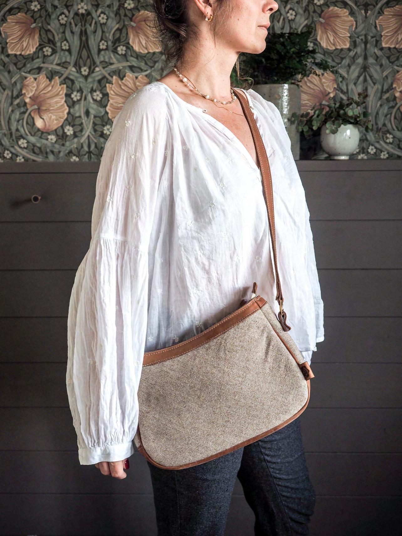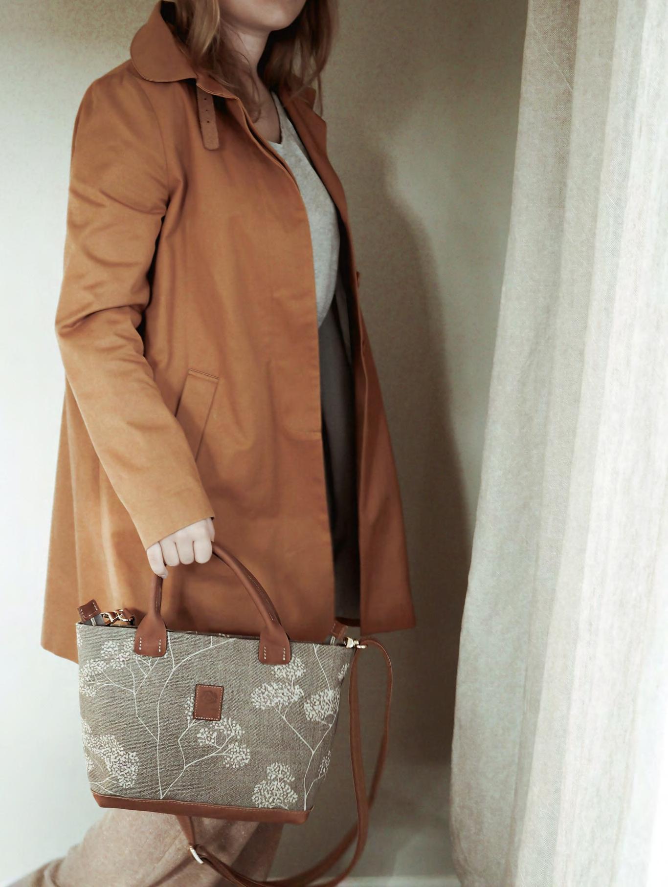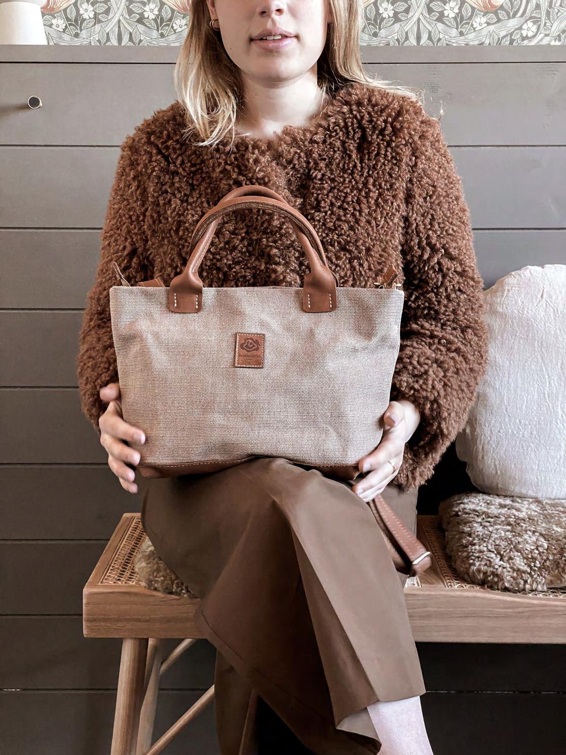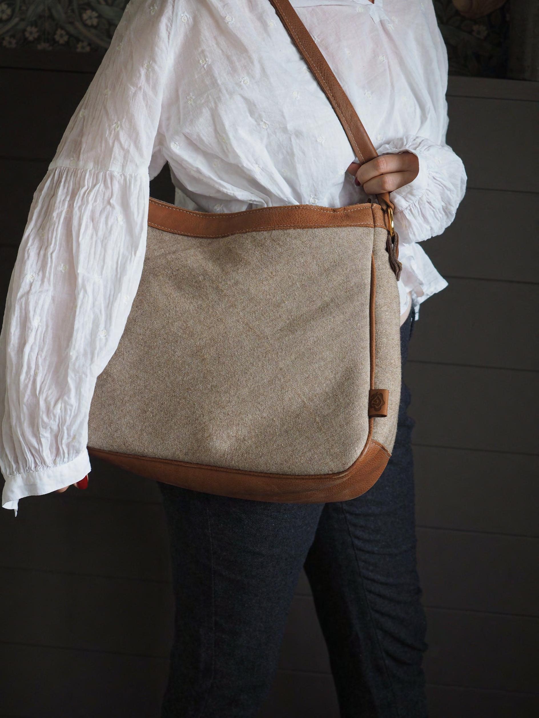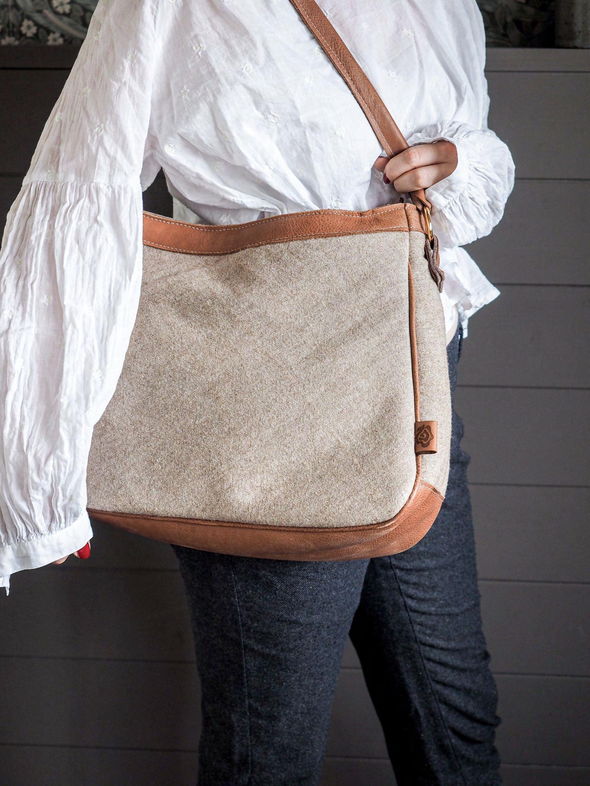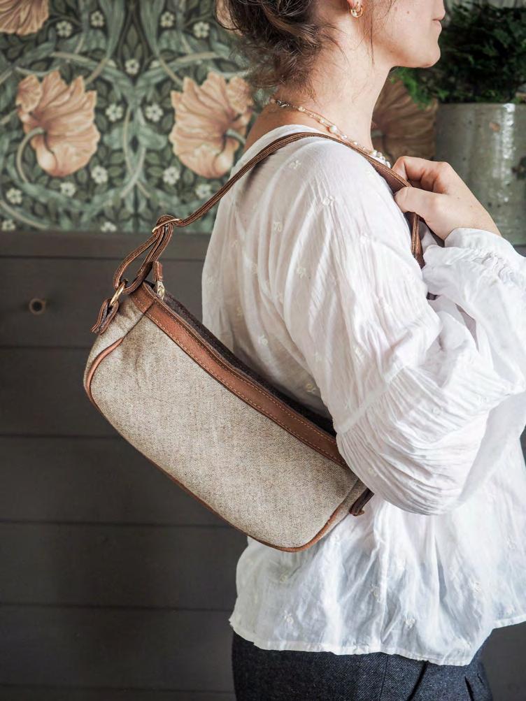 Claire M has a great proportion: it is not too small and not too big and simplyunbeatablyflexible. Itfitsquiteabitandtheleathershoulderstrap ensurescomfortablecarrying. Thesoftleatherworksbeautifullywiththetextilesurfaceofthebagandsets fineaccents.