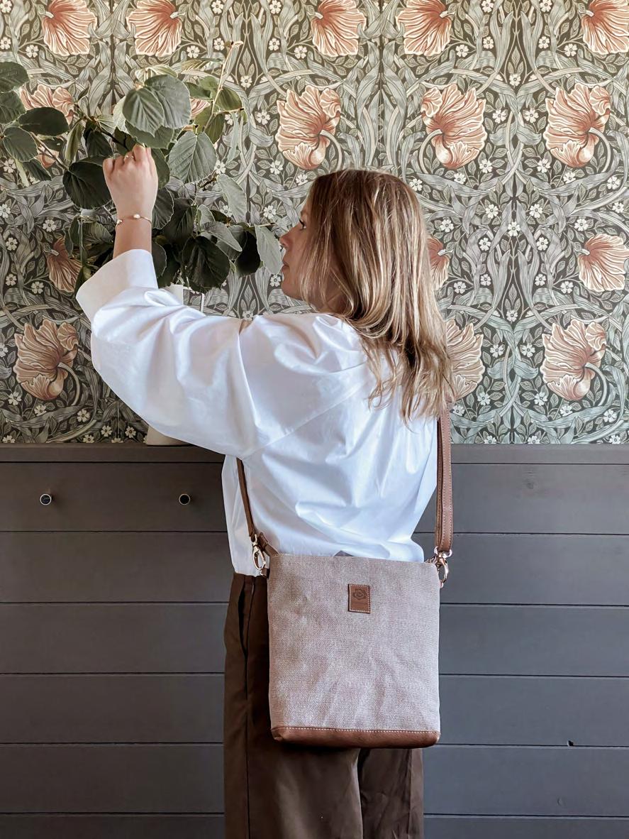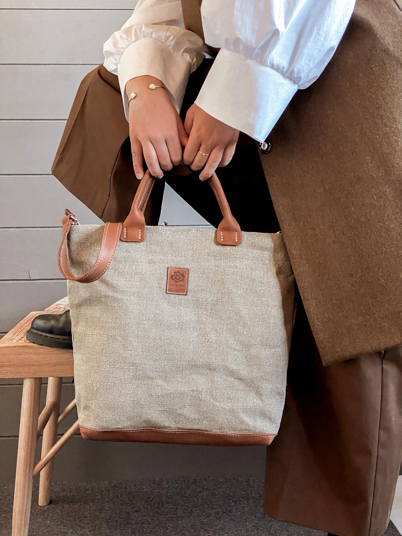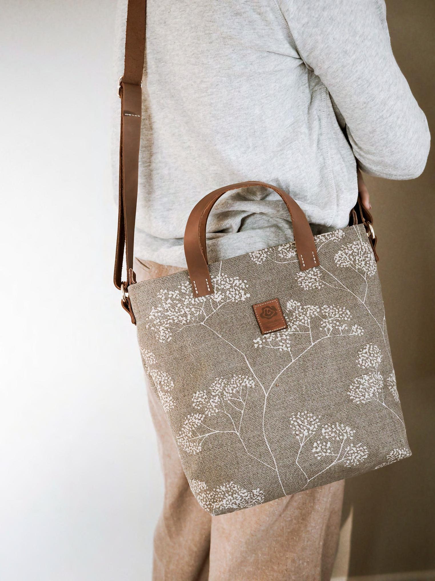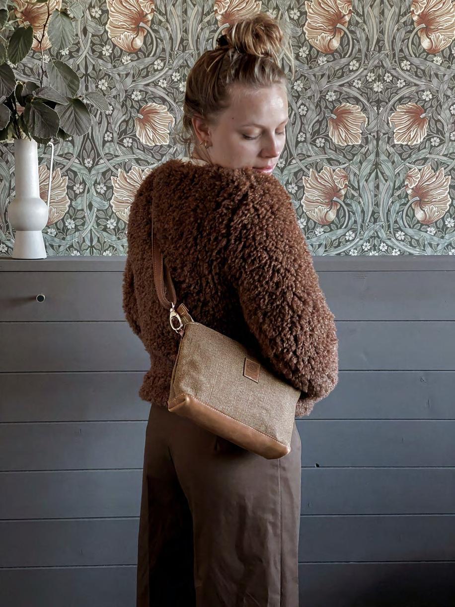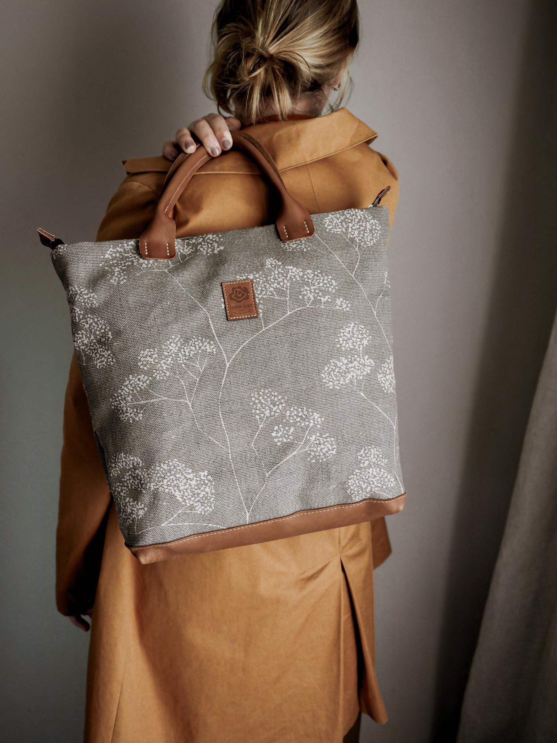 Claire M has a great proportion: it is not too small and not too big and simplyunbeatablyflexible. Itfitsquiteabitandtheleathershoulderstrap ensurescomfortablecarrying. Thesoftleatherworksbeautifullywiththetextilesurfaceofthebagandsets fineaccents.
