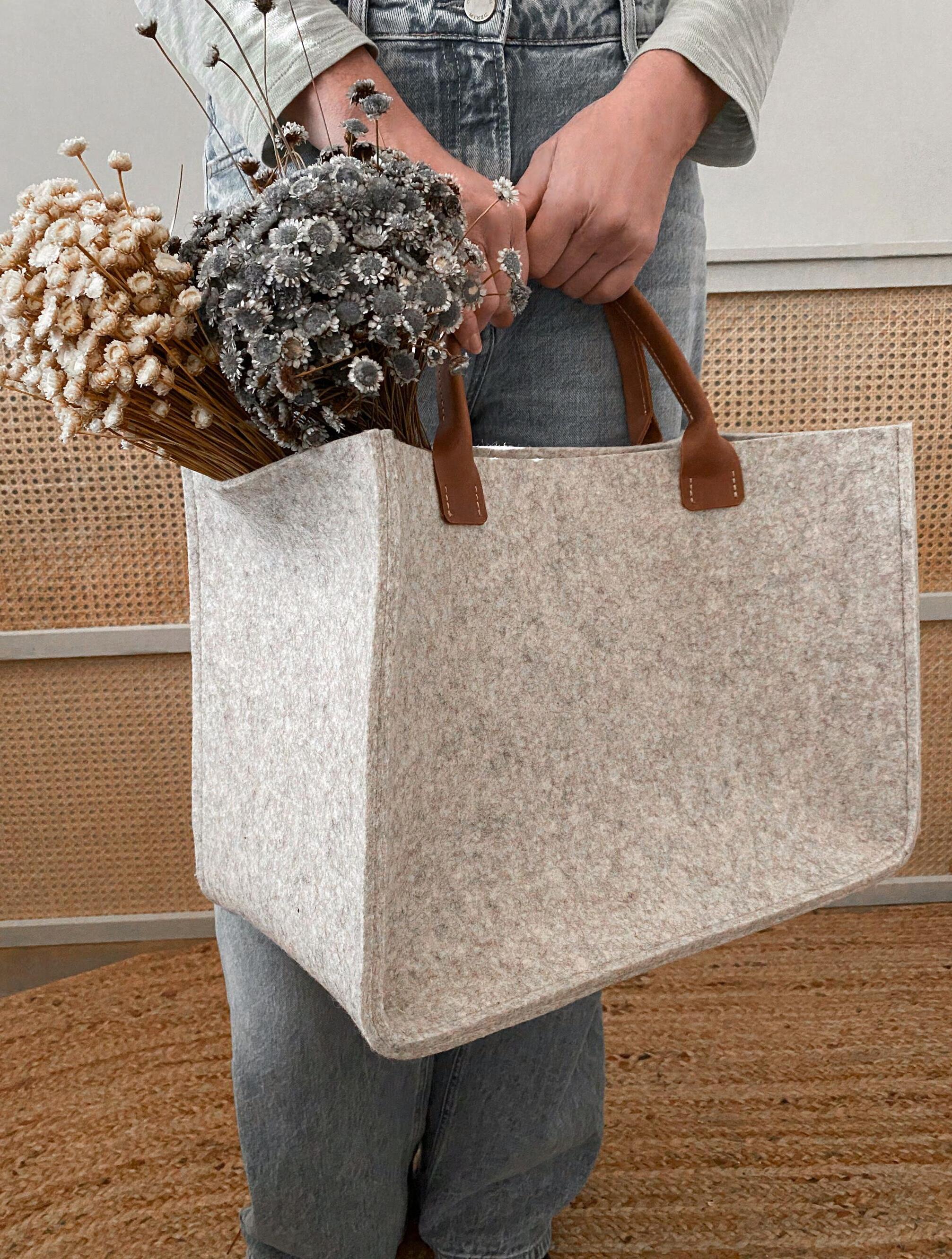 Wollfilz ist sehr leicht und dennoch robust und von hoher Qualität. Bei Regen schützt er vor Nässe und trocknet schnell wieder. Das ist toll für Taschen, die jeden Tag im Gebrauch sein möchten.