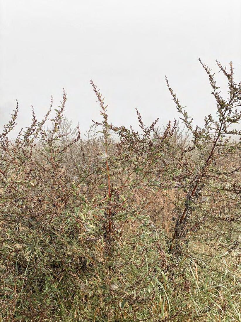Während des Tages schaue ich auf ein Feld mit Bäumen und kann den Wechsel der Jahreszeiten beobachten.