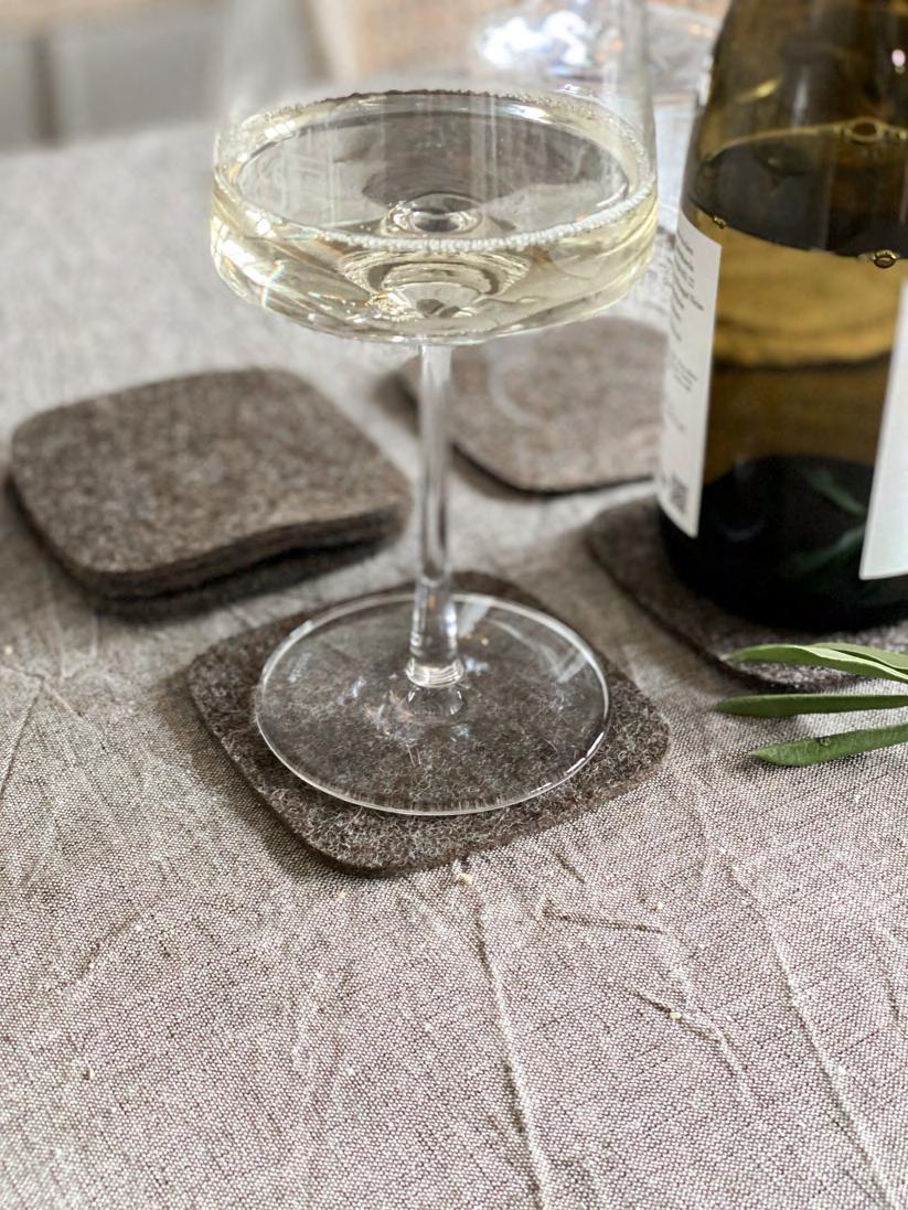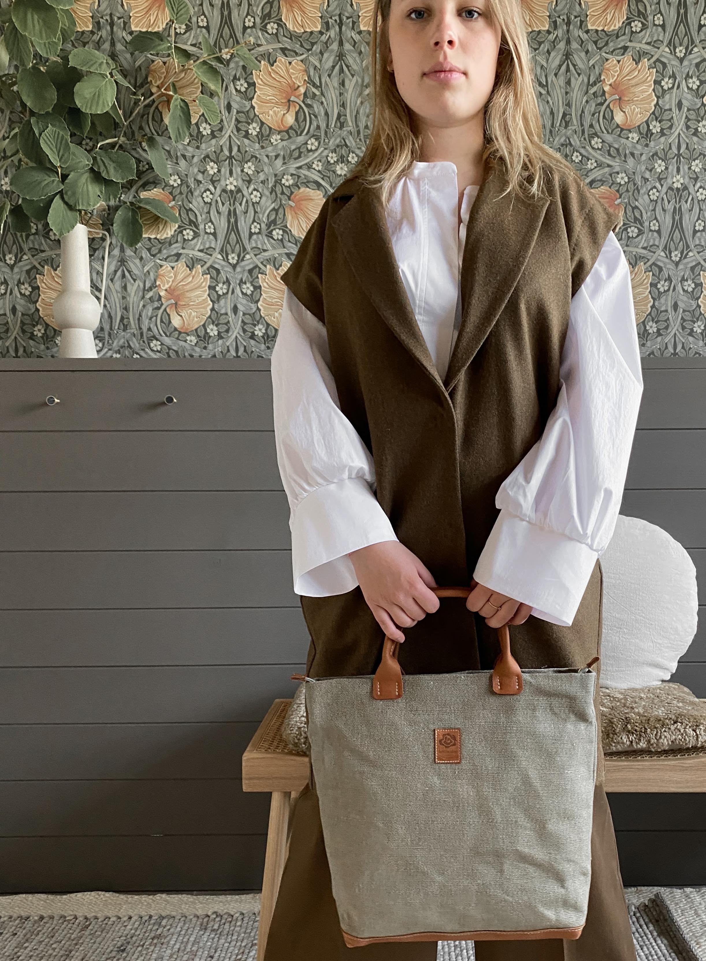 Old felt scraps give this line its stability. They are covered with a boiled fabric made of linen and wool. This fits wonderfully with the style of modern people with a high-quality and sustainable look.