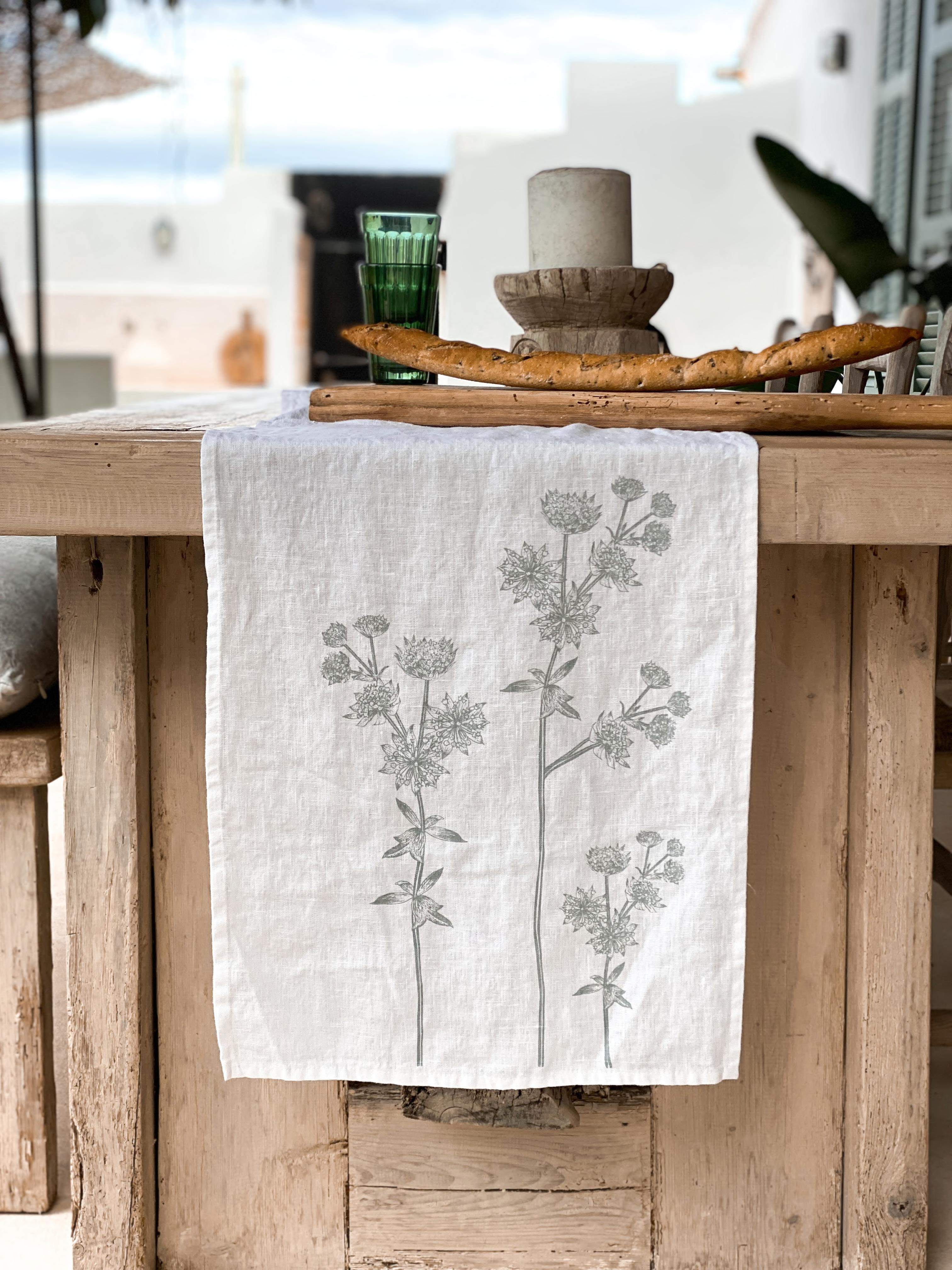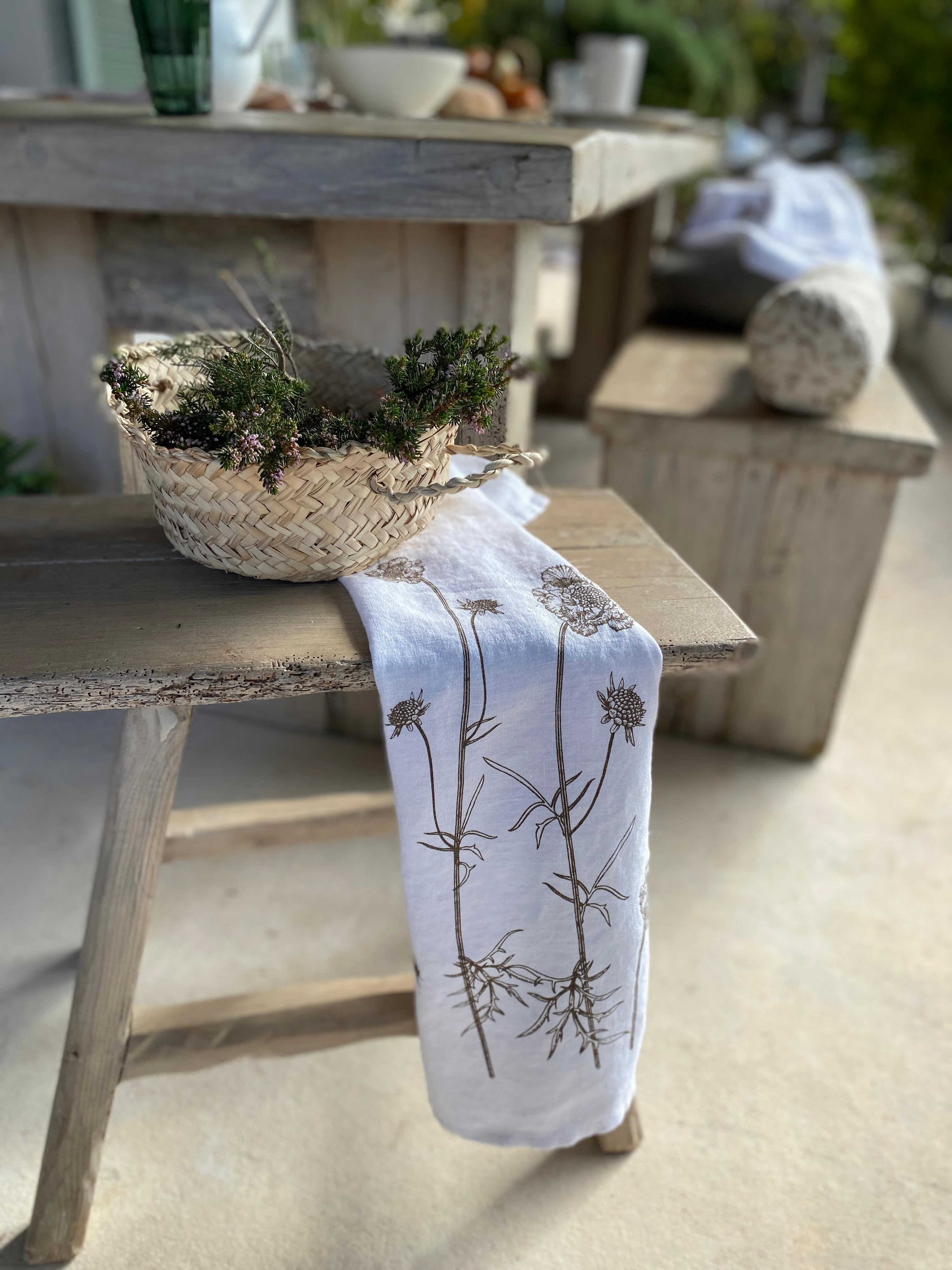 Eat outside, feel the warmth and live with natureenjoy this beautiful attitude to life with highquality textiles made from natural, pure linen Printedwithcareandbyhandinourstudio.