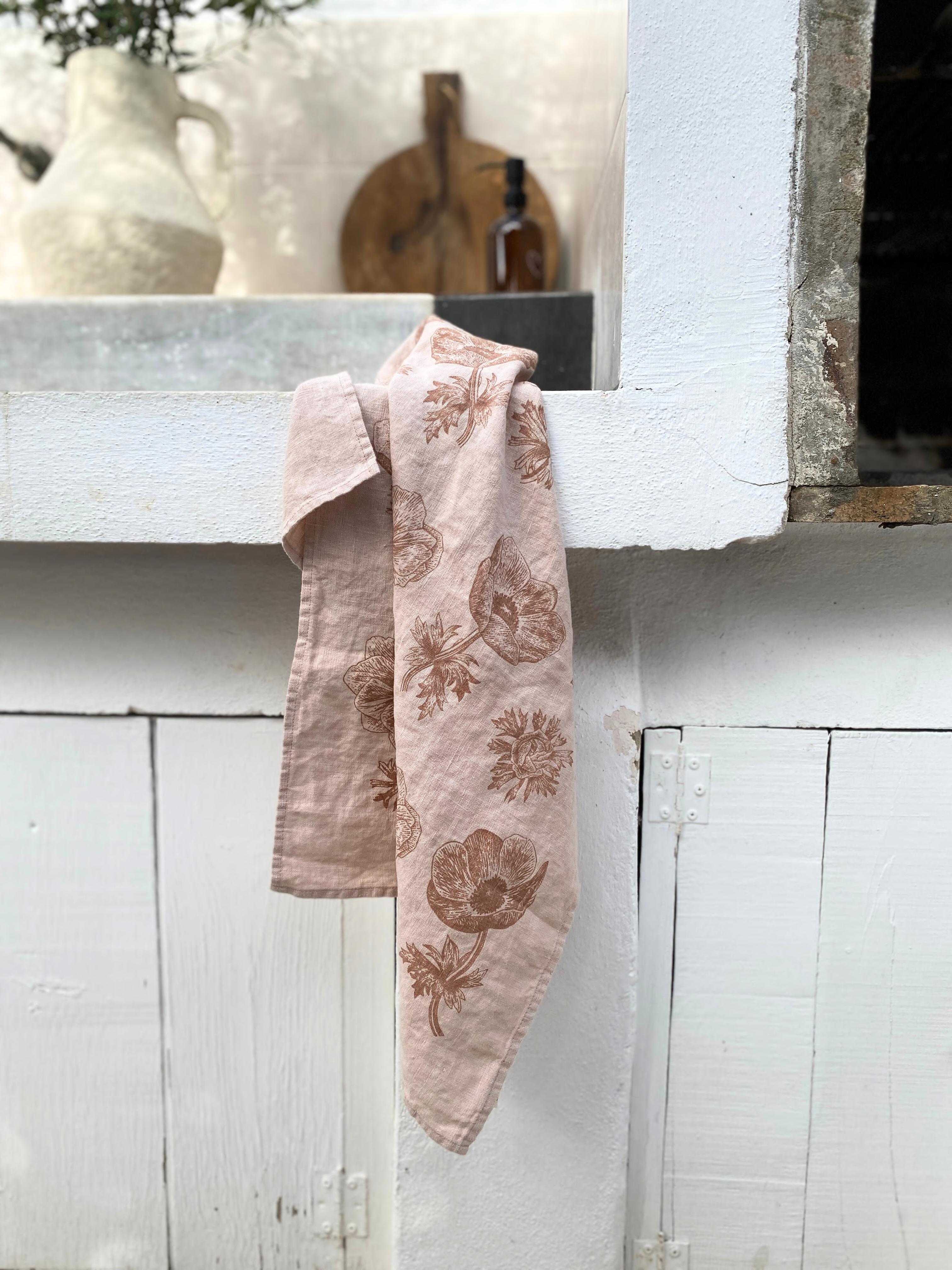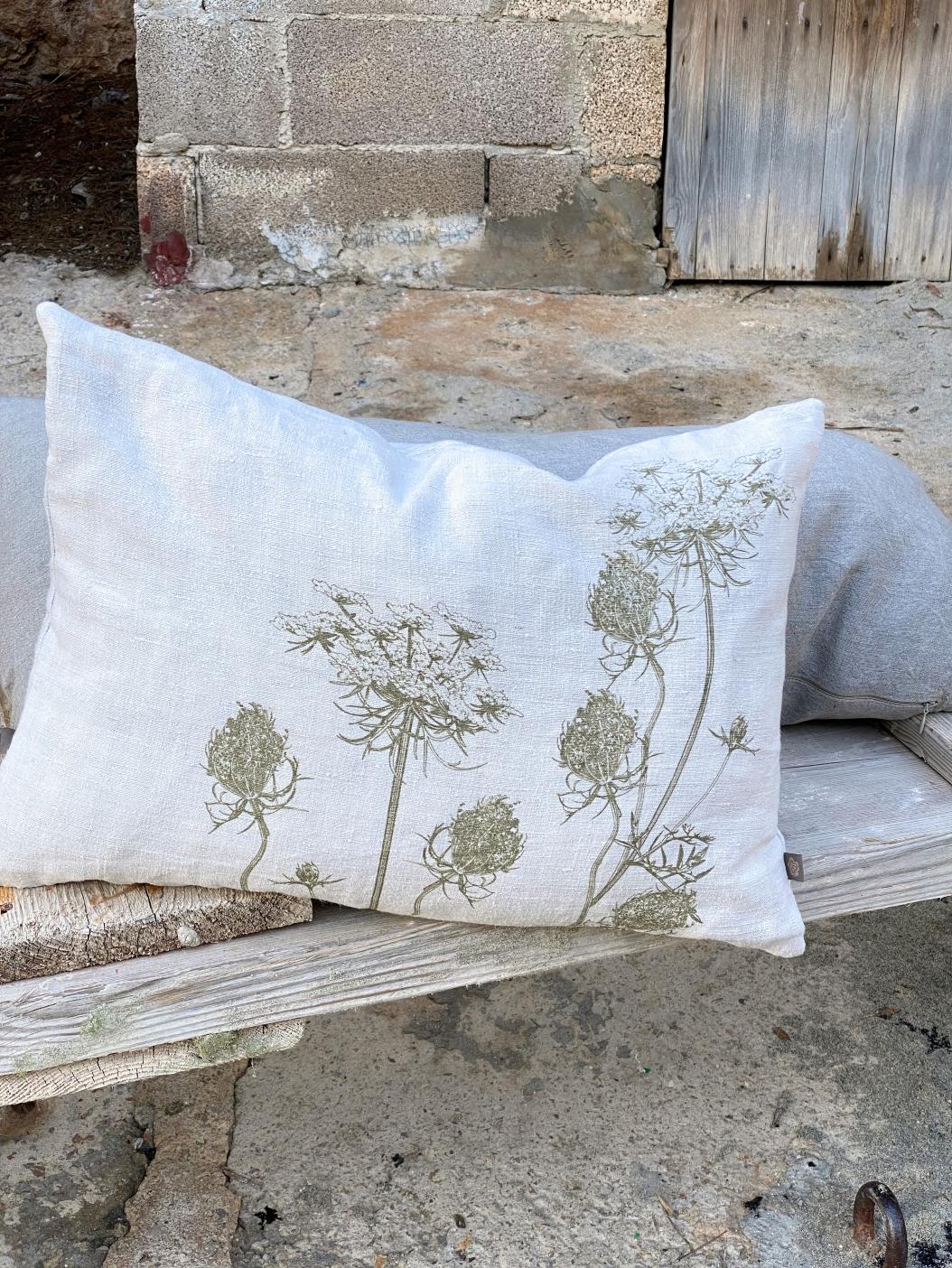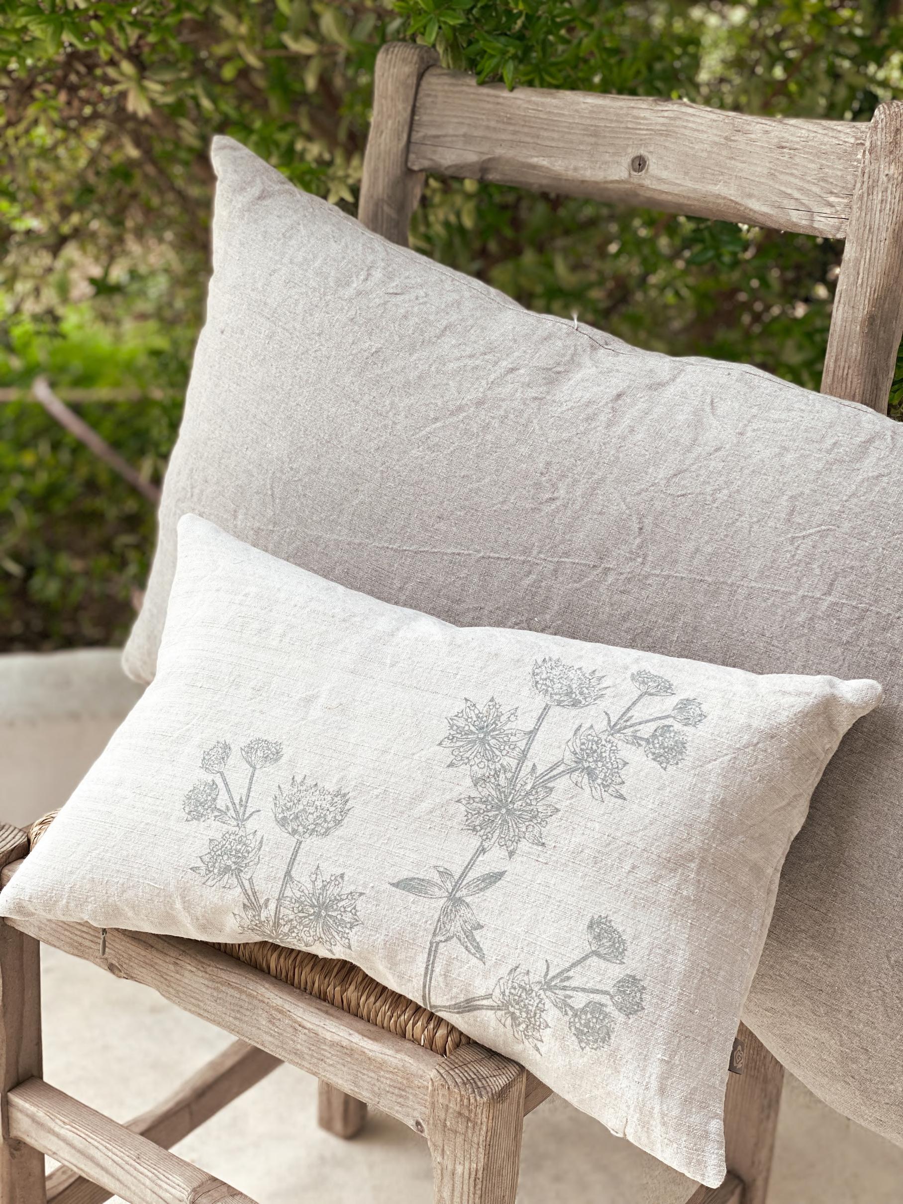 100% Leinen, von Hand bedruckt, waschbar bei 40 Grad in der Waschmaschine