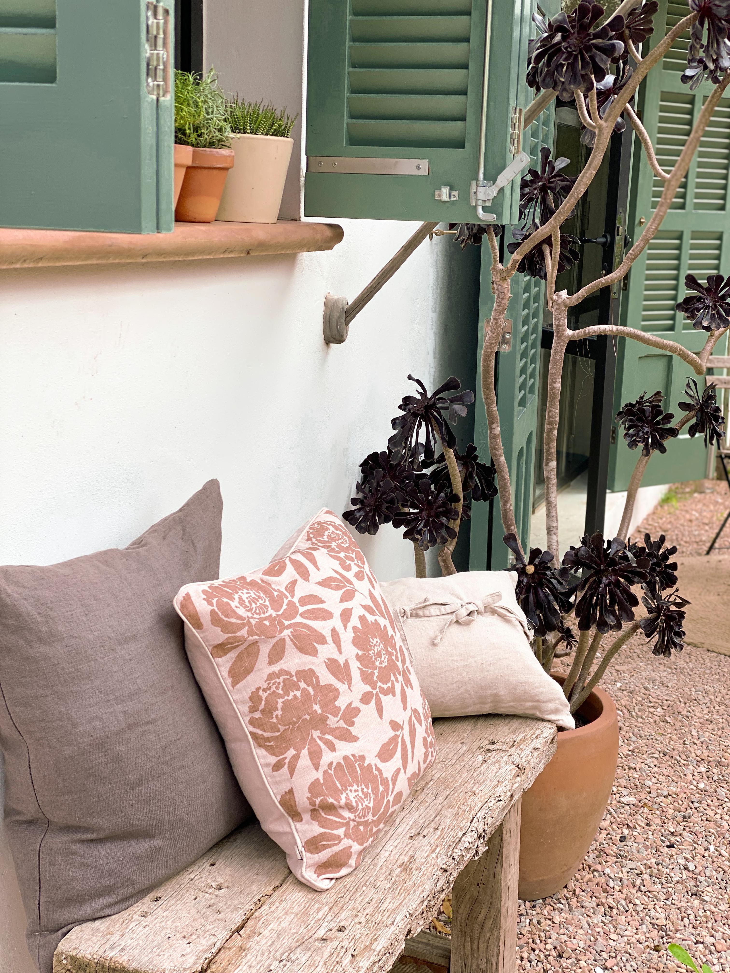 Bright flower cushions in cheerful colors make you want summer, sun and garden.