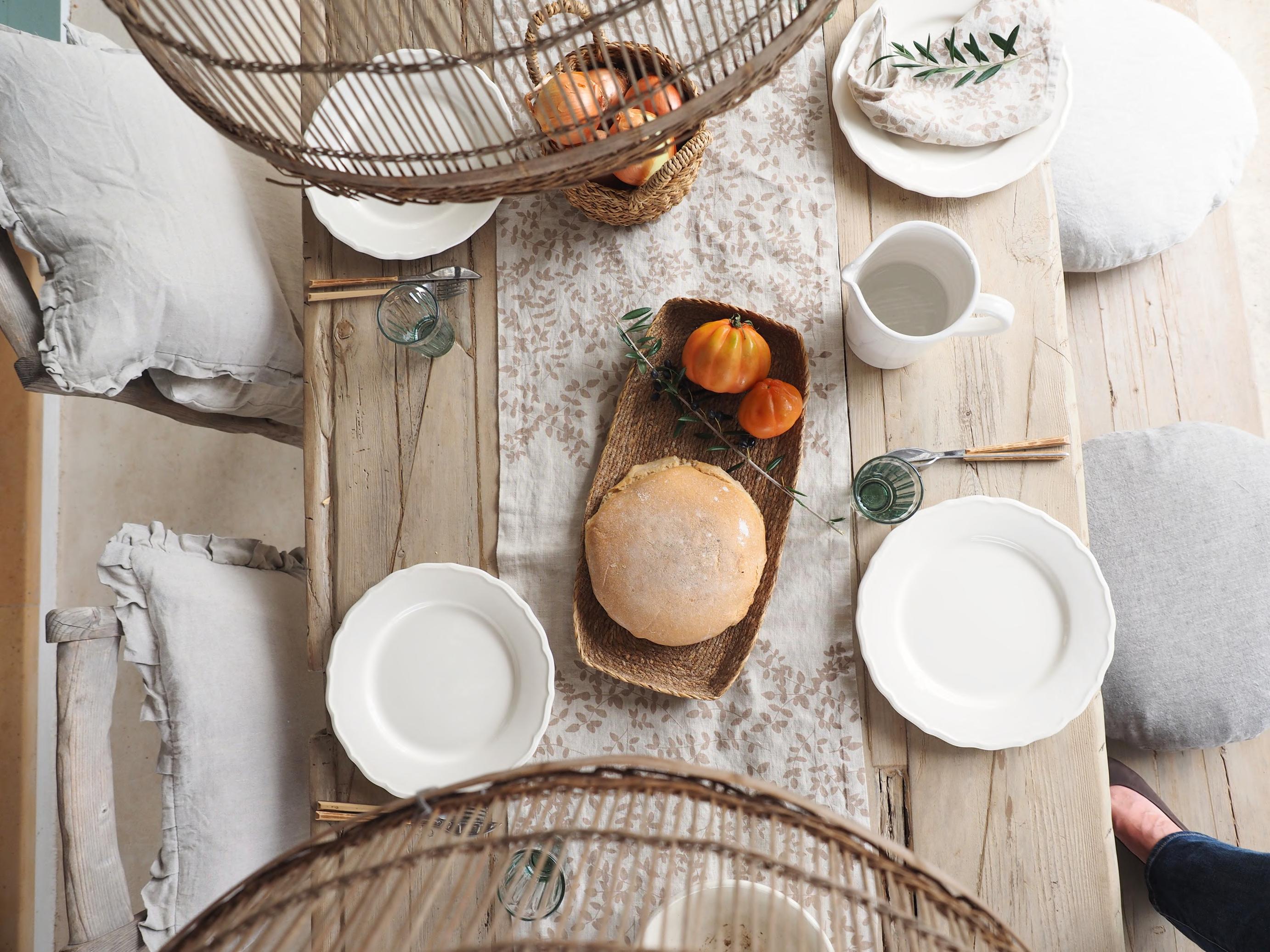 Draußen essen, Wärme spüren und mit der Natur leben - genießen Sie dieses schöne Lebensgefühl mit hochwertigen Textilien aus natürlichem, reinen Leinen Mit Sorgfalt und von Hand in unserem Atelier bedruckt