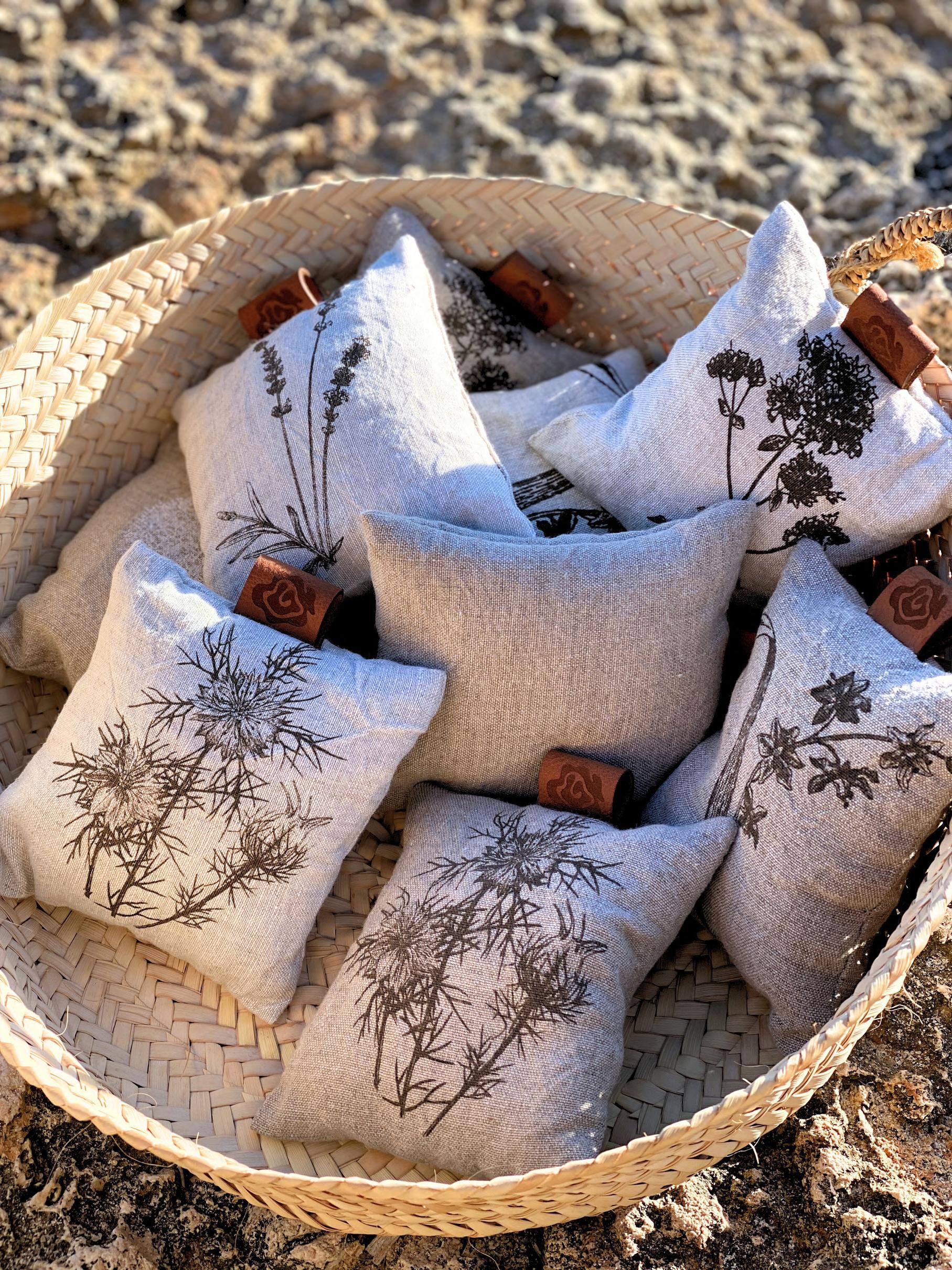 Bedruckte Duftkissen aus Leinen zu 100% mit Lavendelblüten gefüllt