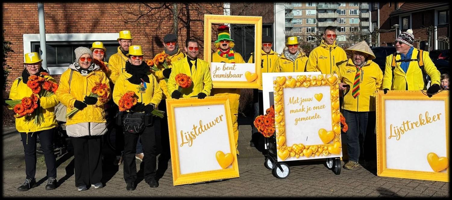 In de stoet van GBLV liepen alle kandidaten mee. Hans Peter Klazenga en Jeffrey Keus in een geel kostuum, de andere leden in de bekend gele jas. Verder heeft de partij tijdens deze Valentijnsdag haar waardering uitsproken naar alle inwoners en vrijwilligers die met hun hart de gemeente kleuren. Tijdens de optocht zijn ongeveer 1000 gerbera’s uitgedeeld en zijn vele honderden op de foto gegaan in een lijst met de tekst “Jij bent onmisbaar.” “Het was een prachtige, vrolijke en zonnige dag. Een dag met vele blije gezichten. Samen maken we Leidschendam Stompwijk en Voorburg en daarin is iedereen onmisbaar! Alle foto’s zijn gepubliceerd op de website: GBLV.nl Grote dank aan de Damzwabbers, de mensen van de EHBO en andere vrijwilligers die deze optocht mogelijk hebben gemaakt. Vanaf aswoensdag gaan we weer met de politiek aan de slag.” sluit Hans Peter Klazenga lachend af.
