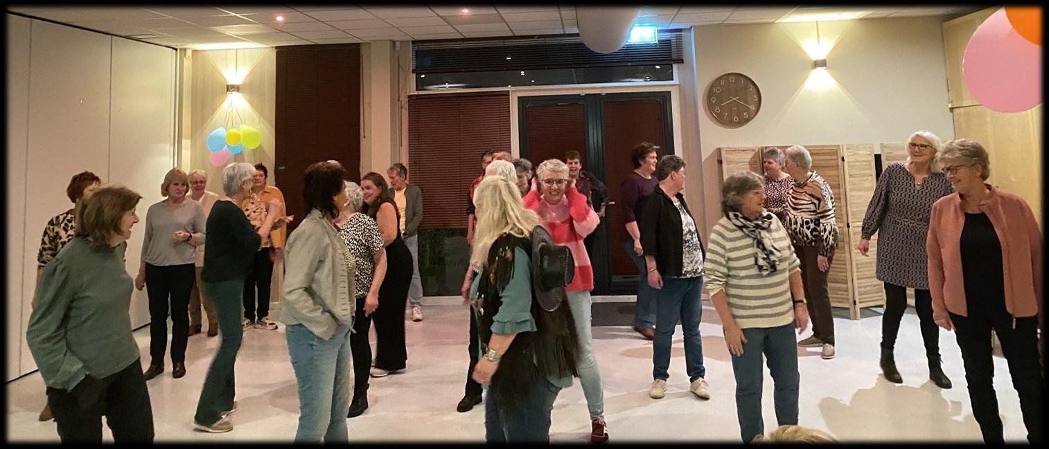 We waren benieuwd naar de opkomst want er heerst griep en niet iedereen kan of wil meer zo huppelen, maar de zaal liep aardig vol en uiteindelijk waren er ruim 30 leden die de uitdaging aangingen. Lies begon voortvarend en de ene helft ging naar links, de andere naar rechts. Chaos dus! Hierna werd het stapjes voor stapjes uitgelegd en dat ging al veel beter. Melanie ging wat naar het midden zodat iedereen het wat beter kon zien. Je kon wel duidelijk zien wie er al eens op linedance gezeten had, die volgden al heel snel het voorbeeld van Lies. Na één lied onder de knie te hebben was het tijd voor de pauze. Hierna werd het nog een graadje moeilijker en haakten er een aantal af, maar ook om te kijken was het een leuk gezicht en meeklappen kon ook, want het was countrymuziek. Al met al een heel gezellige avond weer en hopelijk waren jullie niet te stijf de andere dag. Lies en Melanie bedankt voor jullie uitleg en het plezier dat jullie aan ons overgebracht hebben. Het was TOP!