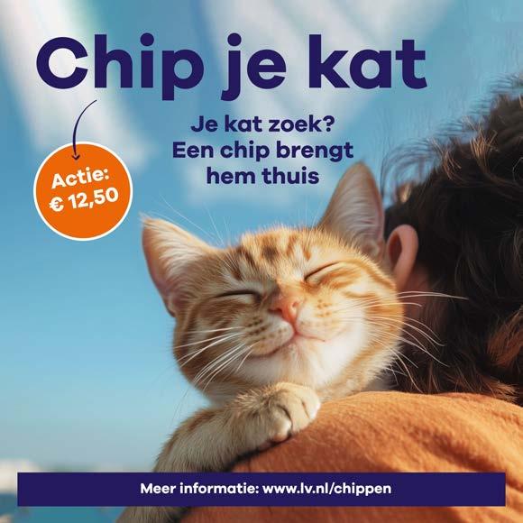 Op 14, 17 of 20 maart kunt u uw kat laten chippen en registreren voor maar € 12,50. Normaal kost dit ongeveer € 40. Met een chip geeft u uw kat de beste kans om bij u thuis terug te komen als hij zoekraakt.