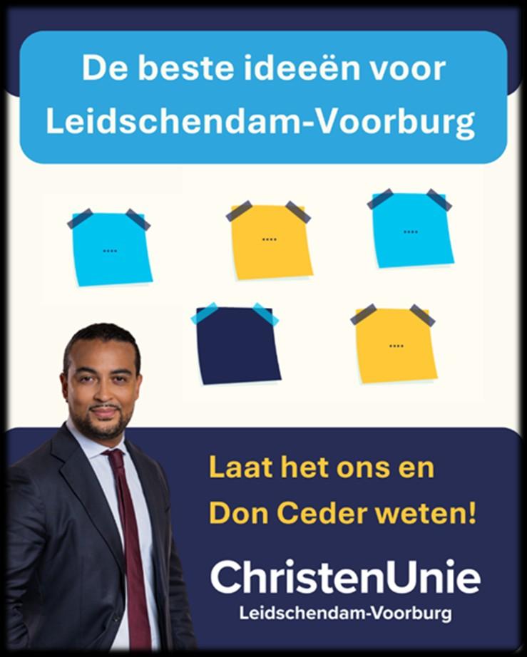 De ChristenUnie Leidschendam-Voorburg nodigt inwoners uit om actief mee te denken over het verkiezingsprogramma 2026–2030. In het programma is bewust één pagina vrijgemaakt voor de beste ideeën van inwoners. Om die ideeën op te halen, gaat de partij begin maart de straat op, mét Tweede Kamerlid Don Ceder.