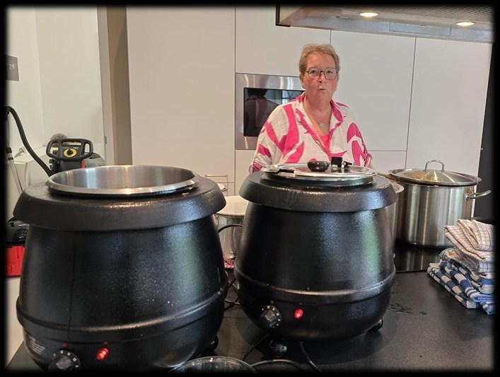 Vrijdag gingen we weer met 40 man aan tafel en wat was het gezellig. Tafels mooi gedekt, prettig gezelschap, nieuwtjes uitgewisseld en harten luchten. Fijn dat we Wil Vurens alweer mochten begroeten en wat zijn we Tom dankbaar voor zijn bijzonder goede idee om bij zijn afscheid in plaats van bloemen een bijdrage voor Jetty’s eettafel te vragen. We waren ontroerd door zijn idee en blij verrast met het opgeleverde bedrag. We waren ook blij met de komst van Wil van Leeuwen, zij komt ons team versterken. Ze heeft jaren en jaren in de Bles gewerkt en kilo’s aan salades gemaakt. Wellicht komt er bij ons ook nog een keer de gelegenheid om te proeven dat ze die vaardigheid niet verloren is.
